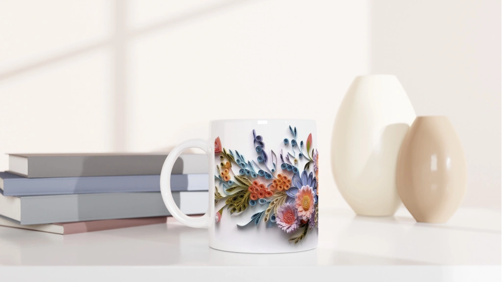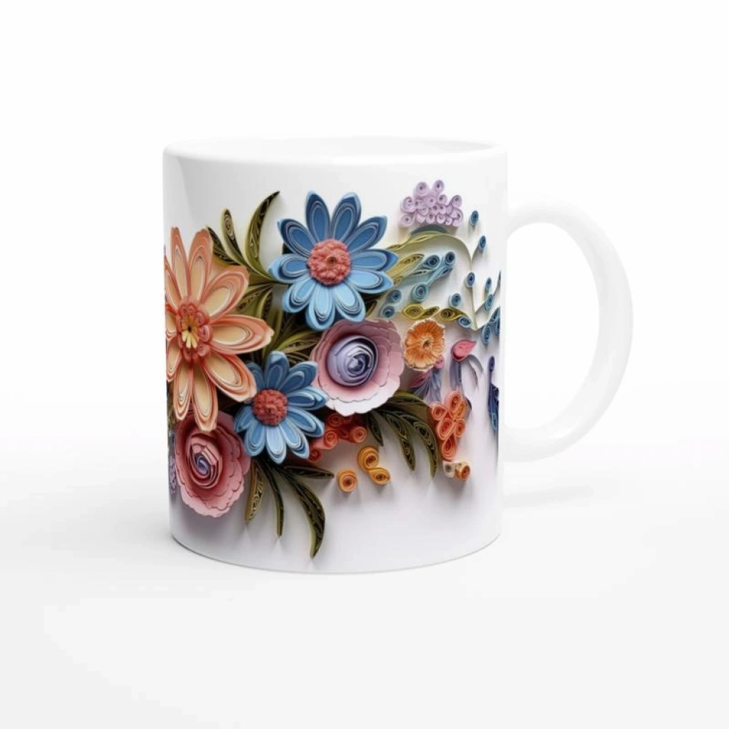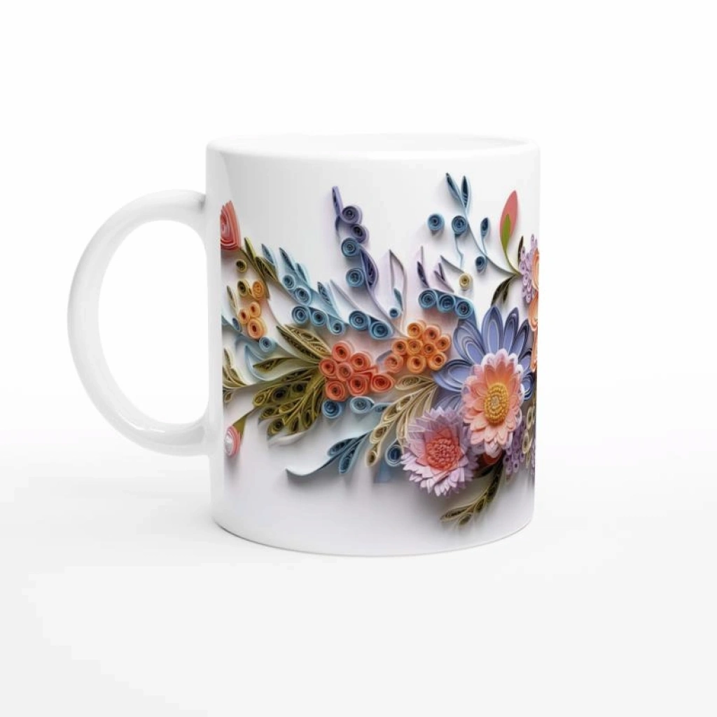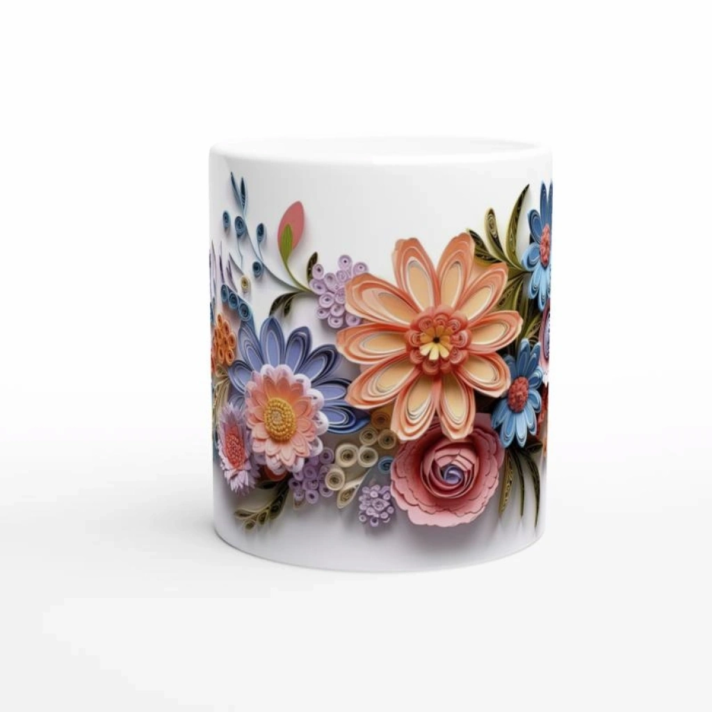 Kağıt Sanatı Çiçek Bahçesi Kupa Bardak, pastel tonlardaki spiral ve kıvrımlı çiçek motifleriyle hem modern hem nostaljik bir görünüm yaratıyor.