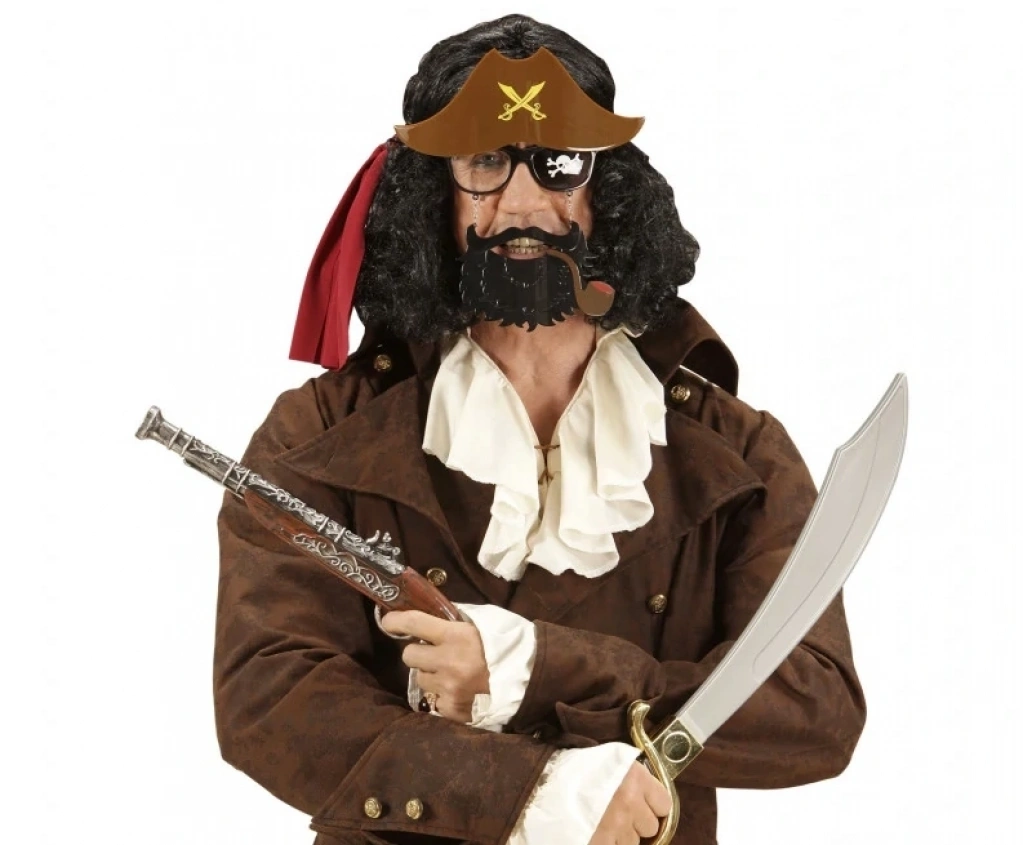 Kahve Renk Şapkalı Siyah Sakallı Pipolu Jack Sparrow Korsan Gözlüğü: Korsan Ruhunu Uyandırın!