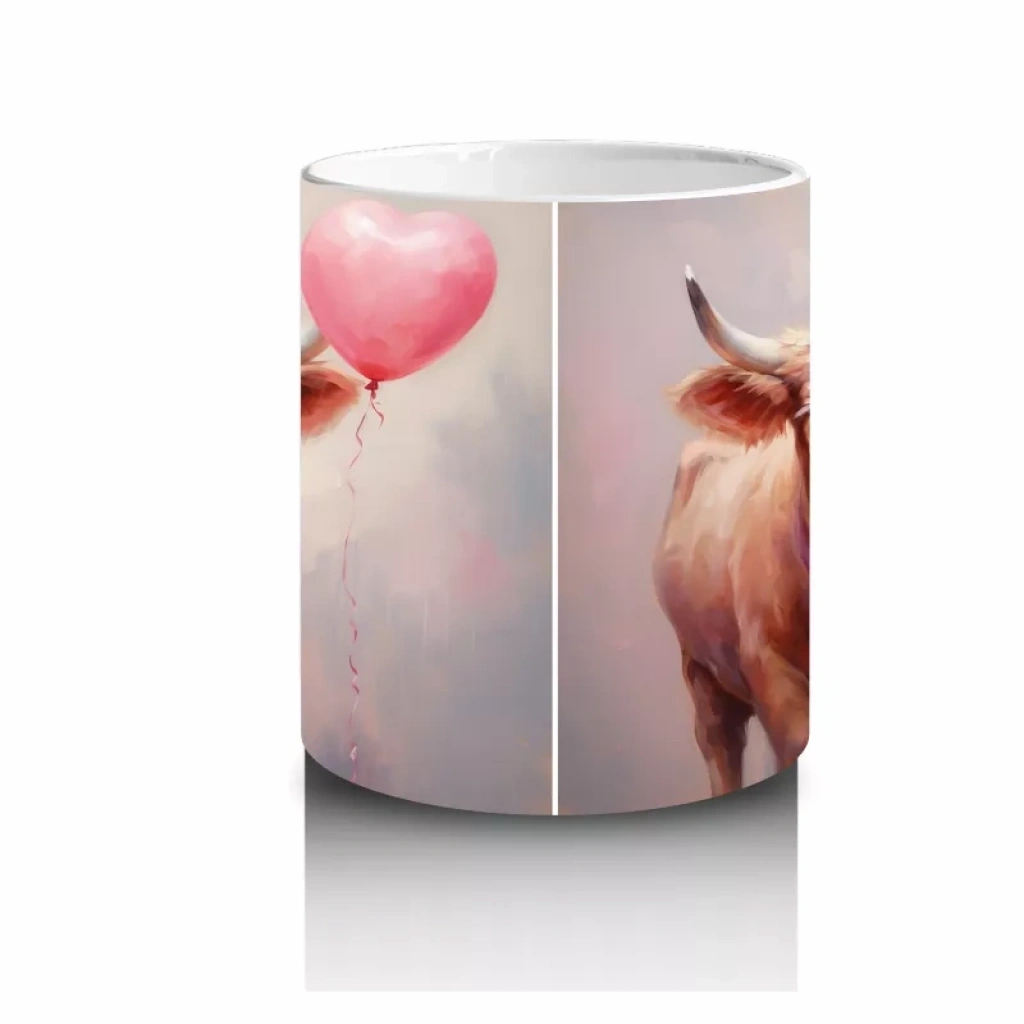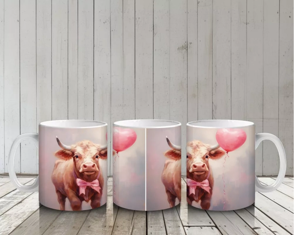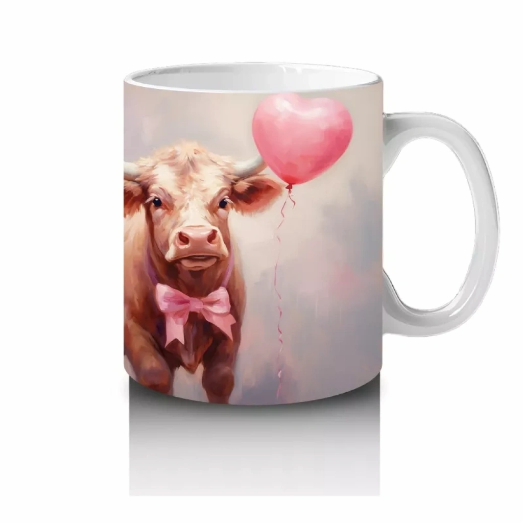 Kalp Balonu Tutan Sevimli İnekler – Baskılı Kahve Kupası