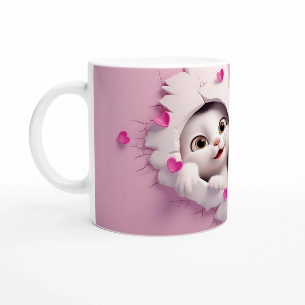 Kalp Çatlaktan Bakan Neşeli Kedi Çifti Temalı Baskılı Kupa Bardak, pembe tonlarındaki arka plan ve kalp formlu çatlak detayıyla hem romantik hem de eğlenceli bir tasarıma sahip. Kedi severler için mükemmel bir hediye alternatifi.