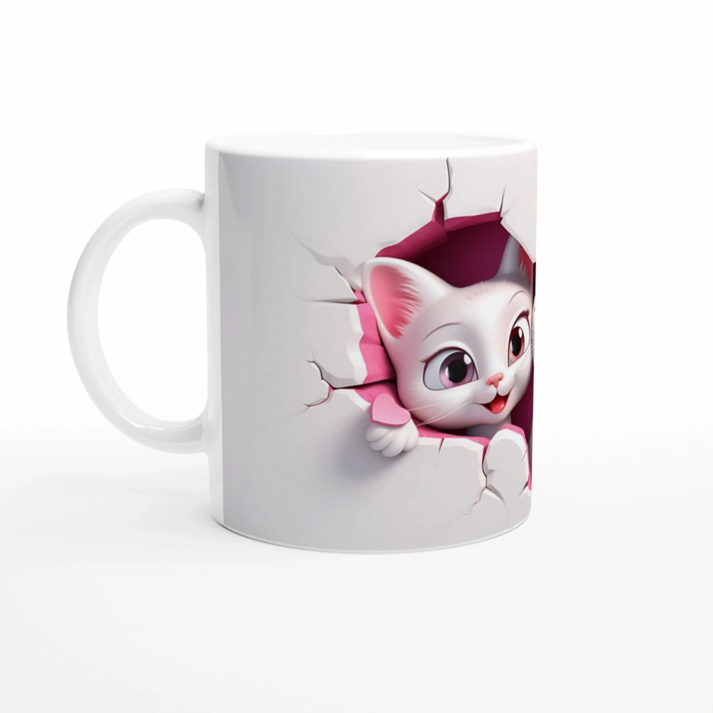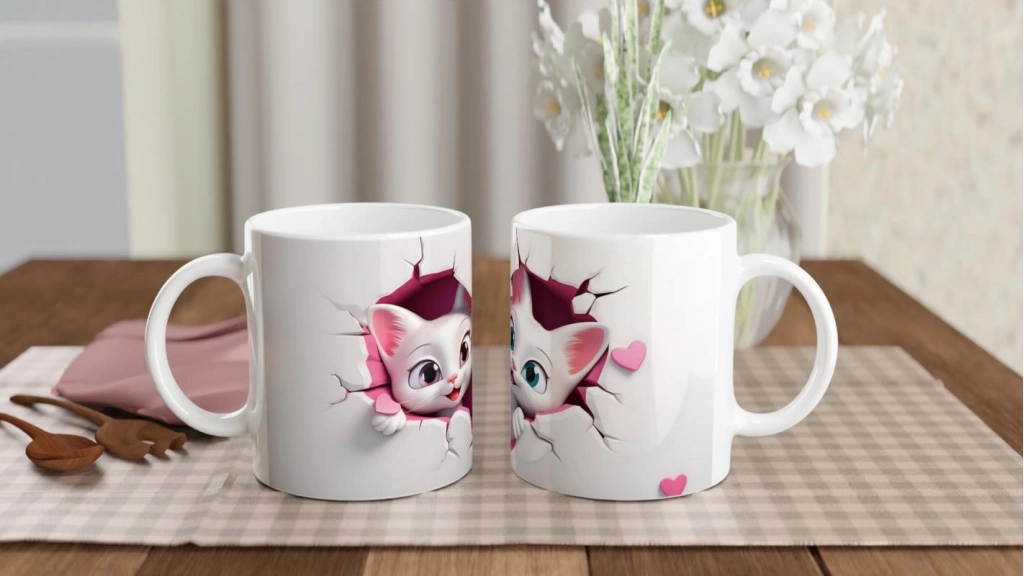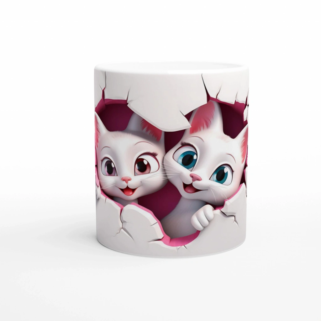 Kalp Figürlü Çatlak Duvardan Bakan Neşeli Kediler Temalı Baskılı Kupa Bardak, farklı göz renklerine sahip iki sevimli kedi karakteriyle eğlenceli ve romantik bir hava sunuyor. Bu tasarım, özellikle pozitif enerji yayan hediyeler arayanlar için ideal bir tercih.