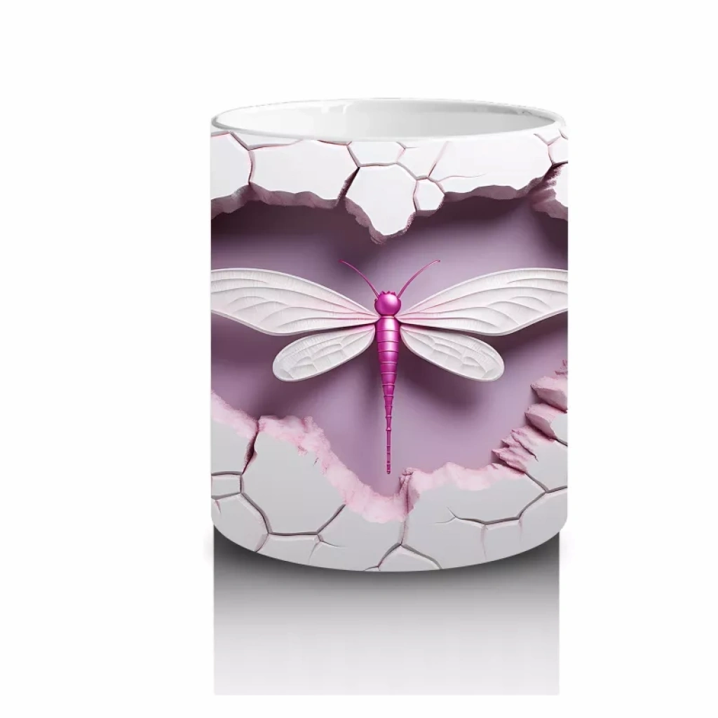 Lila tonlarında narin bir kelebek, kalp şeklindeki çatlakta tüm zarafetiyle göz kamaştırıyor. Romantik ve pastel tasarımları sevenlere özel, şık ve anlamlı bir kupa modeli.