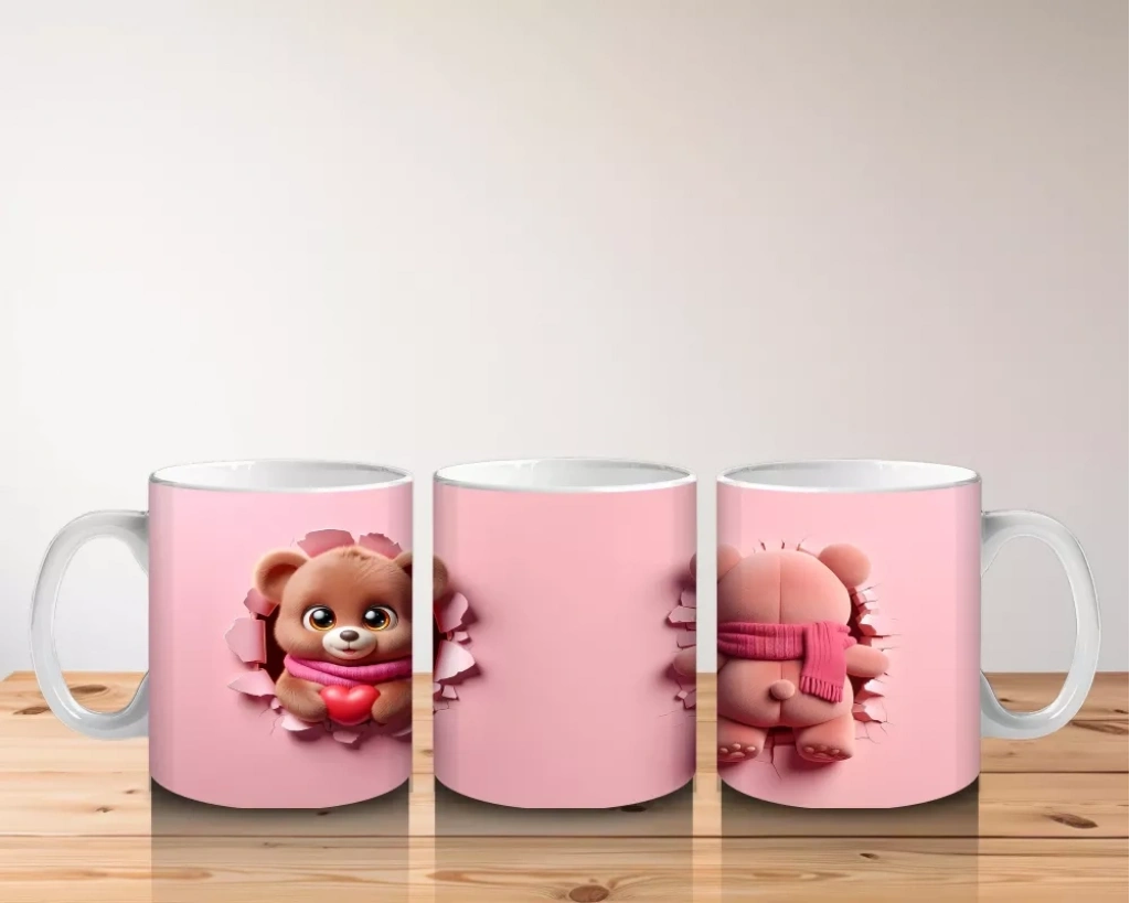 Kalp Tutan Ayıcık Maskot ve Arka Görünümü – Baskılı Kahve Kupası