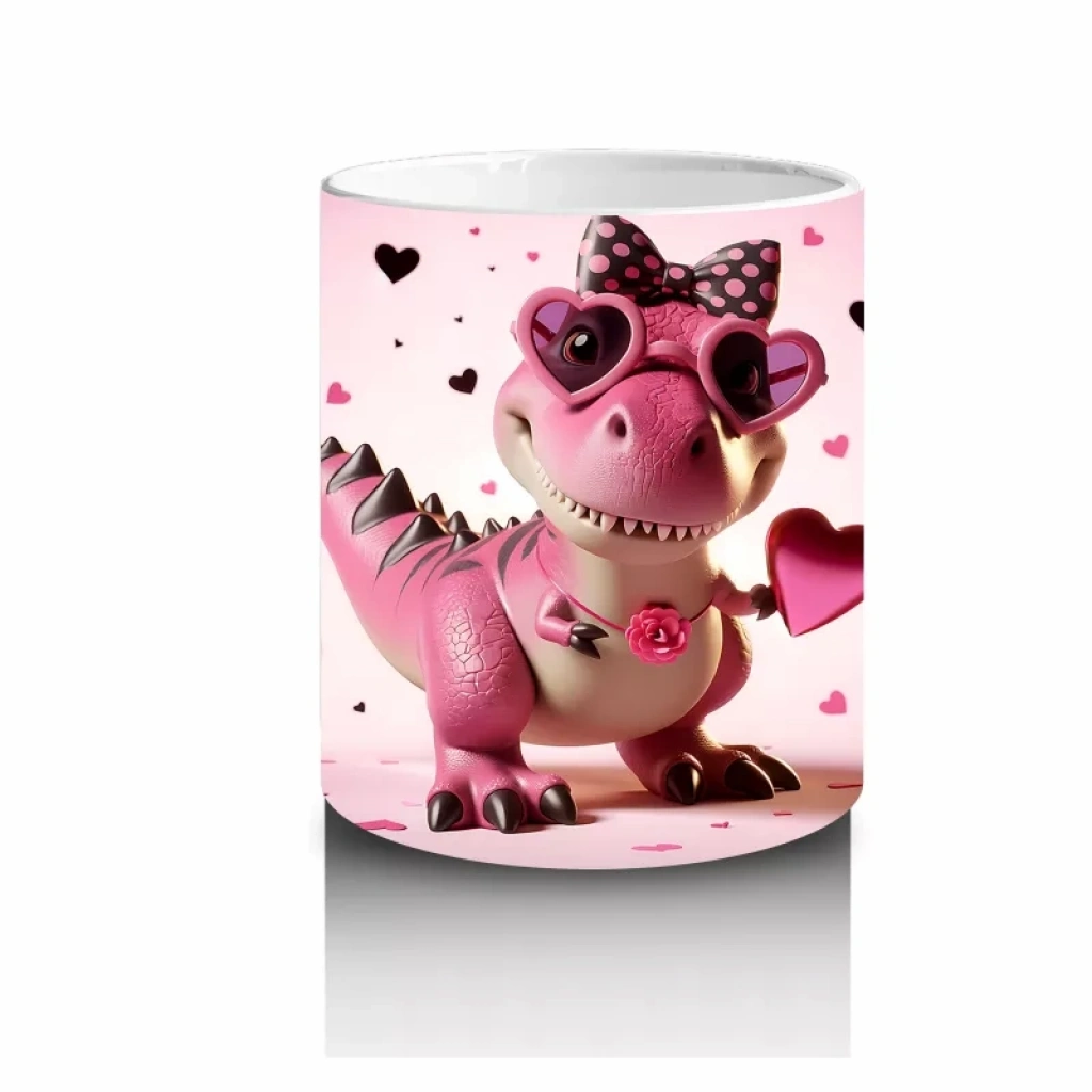 Efsaneler diyarından gelen sevimli bir pembe dinozor, kalplerle çevrili neşeli bir atmosferde! Eğlenceli ve farklı tasarımıyla her yaşa hitap eder. ??