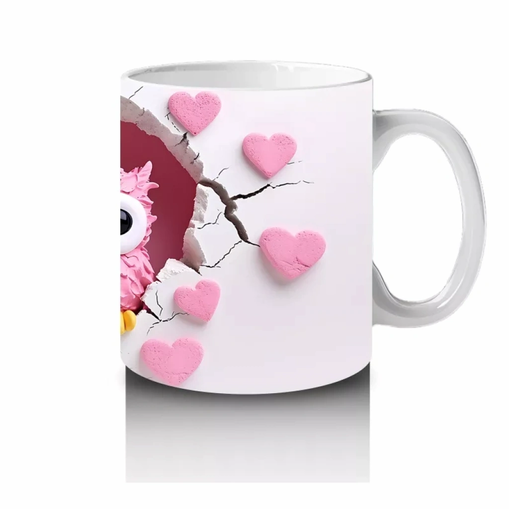 Kalp desenli arka planda yer alan renkli baykuş çifti, sevgi dolu ve enerjik bir atmosfer yaratıyor. Romantik ve canlı tasarımları sevenler için dikkat çekici bir alternatif.