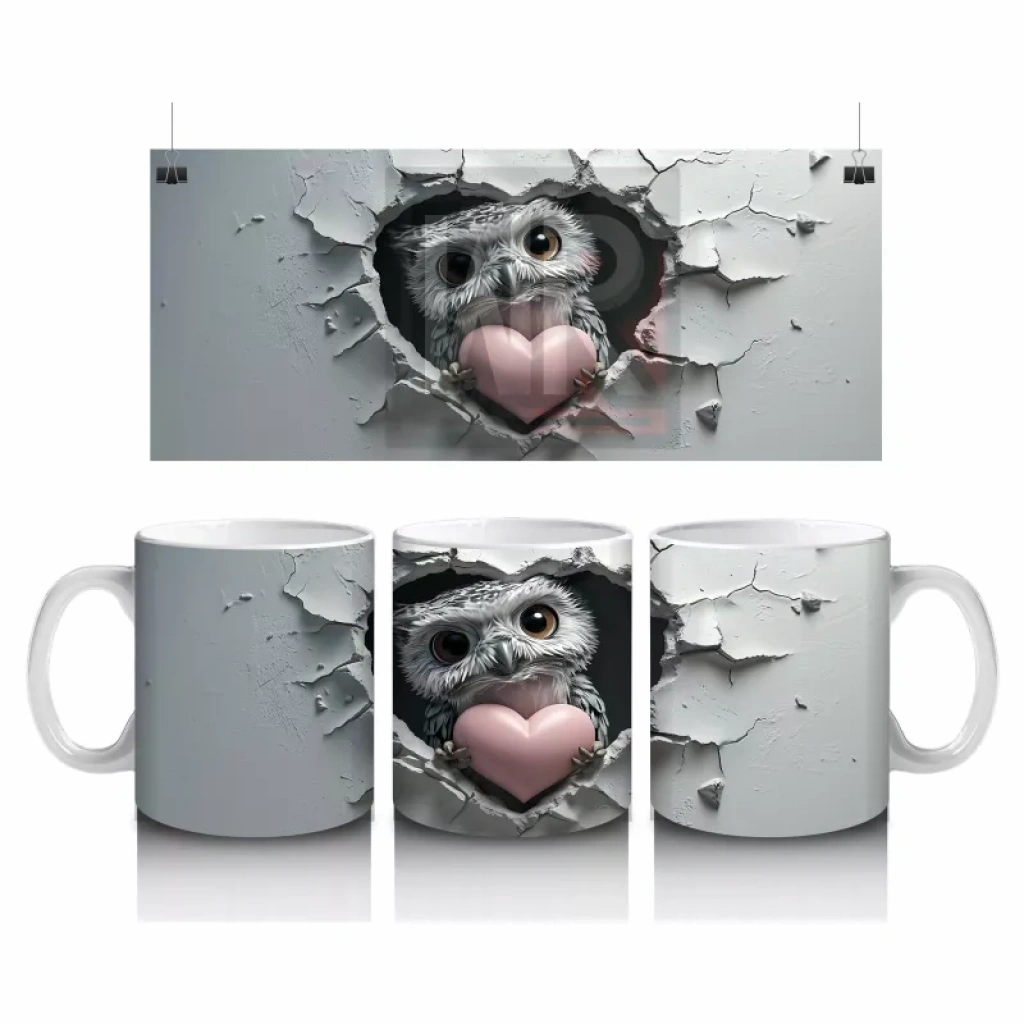 Çatlak duvarın içinden bakan bilge baykuş, kalp detaylarıyla duygusal bir dokunuş sunuyor. Hem gizemli hem sevimli bir atmosfer arayanlara özel.