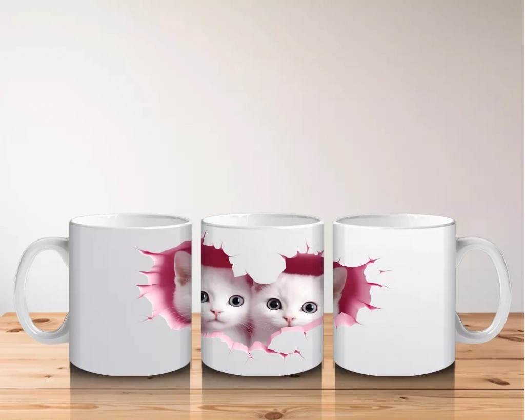 Kalp şeklindeki çatlağın içinden birlikte bakan bu iki tatlı kedi, dostluk ve bağlılığın en sevimli halini yansıtıyor. Kedi severler için sıcak ve duygusal bir tasarım.