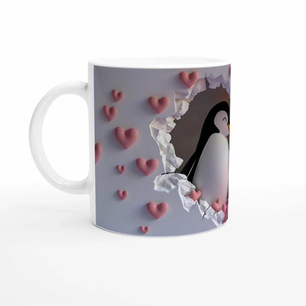 Kalpli Çatlaktan Bakan Penguenler Temalı Baskılı Kupa Bardak, pastel renkli kalplerle süslenmiş yumuşak bir kompozisyon sunarak hem romantik hem de eğlenceli bir tarz yakalıyor. Sevgi dolu hediye seçenekleri arasında öne çıkıyor.
