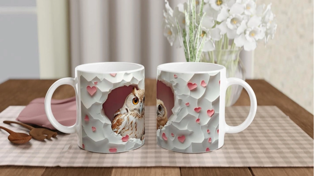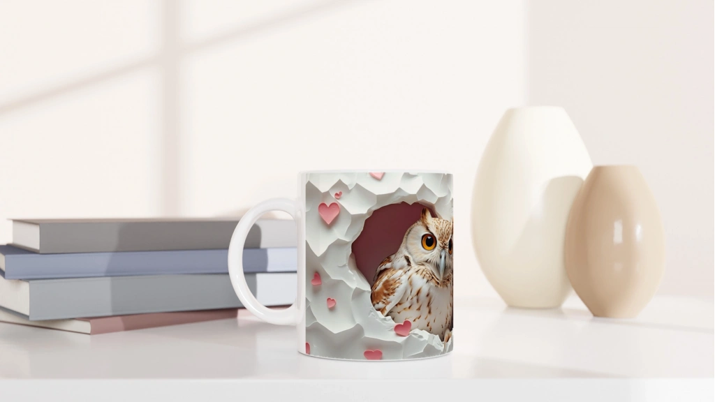 Kalpli Duvardan Bakan Baykuş Temalı Baskılı Kupa Bardak