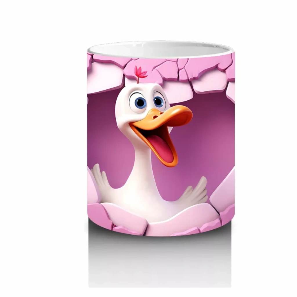Kalpli Duvarı Delen Sevimli Ördek – Baskılı Kahve Kupası