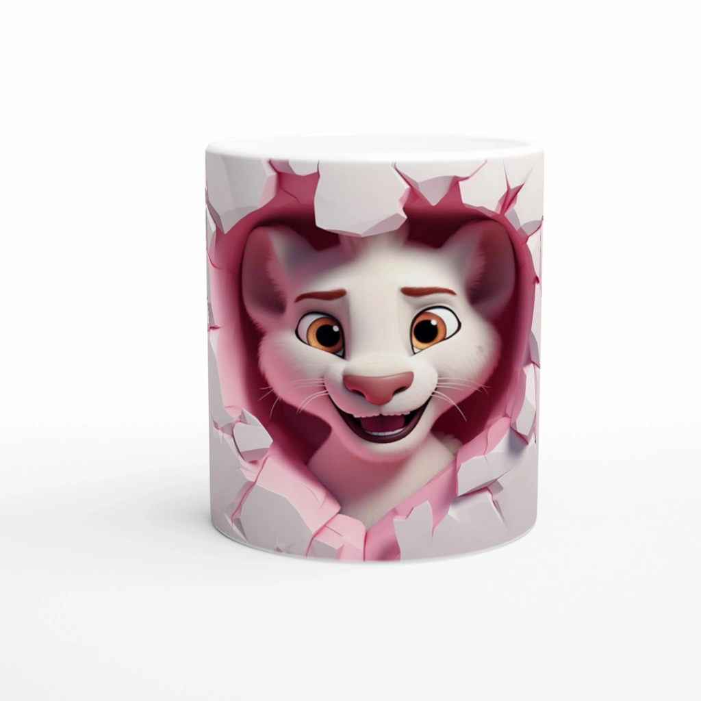 Kalp şeklinde kırılmış duvarın içinden sevimli bakışlarıyla çıkan bu minik vaşak, neşeyi ve sevimliliği bir araya getiriyor. Özellikle hayvan severlere hitap eden bu özgün tasarım kupa, hediye olarak da harika bir tercih.