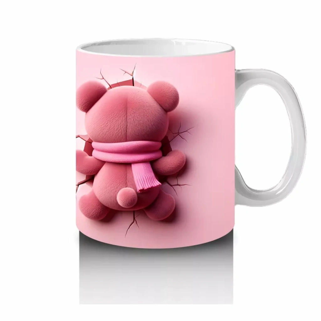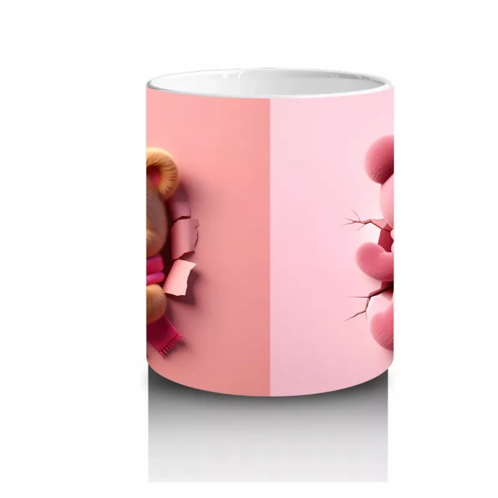 Ön ve arka yüzeyinde kalpli figür tutan ayıcık karakteri, aşkı ve sıcaklığı iki açıdan birden sunuyor. Romantik ve detay odaklı tasarımlardan hoşlananlar için özel bir kupa.