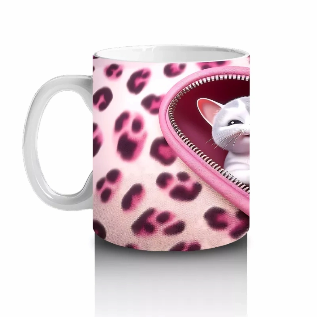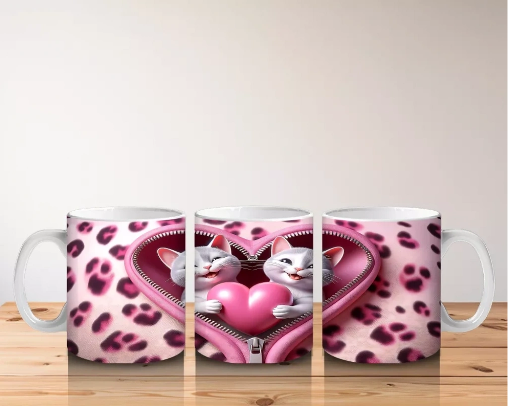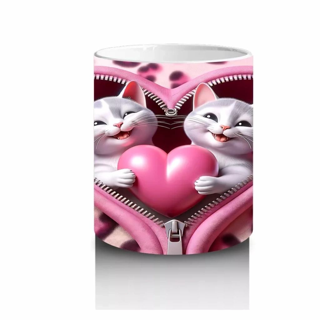 Kalpli Fon Üzerinde Sevimli Kediler – Baskılı Kahve Kupası
