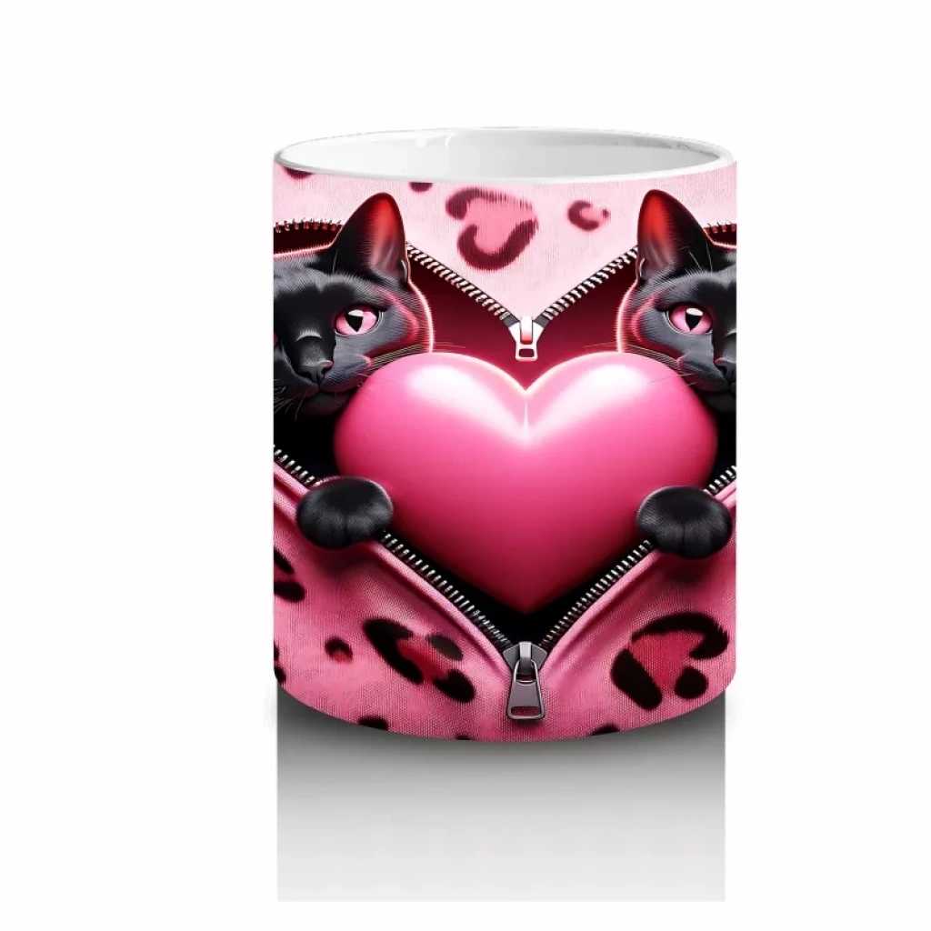 Elinde kalpli pembe yastıkla poz veren bu minnoş kedi, sevgi dolu bir atmosfer yaratıyor. Hem romantik hem de sıcak bir hediye alternatifi olarak öne çıkıyor.