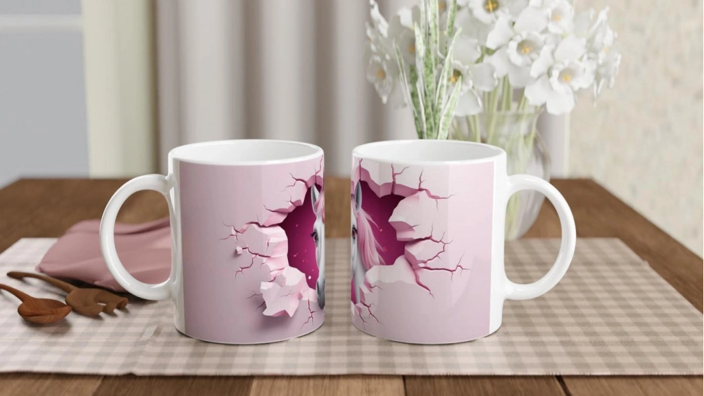 Kalpli Pembe Yeleli At Temalı Baskılı Kupa Bardak