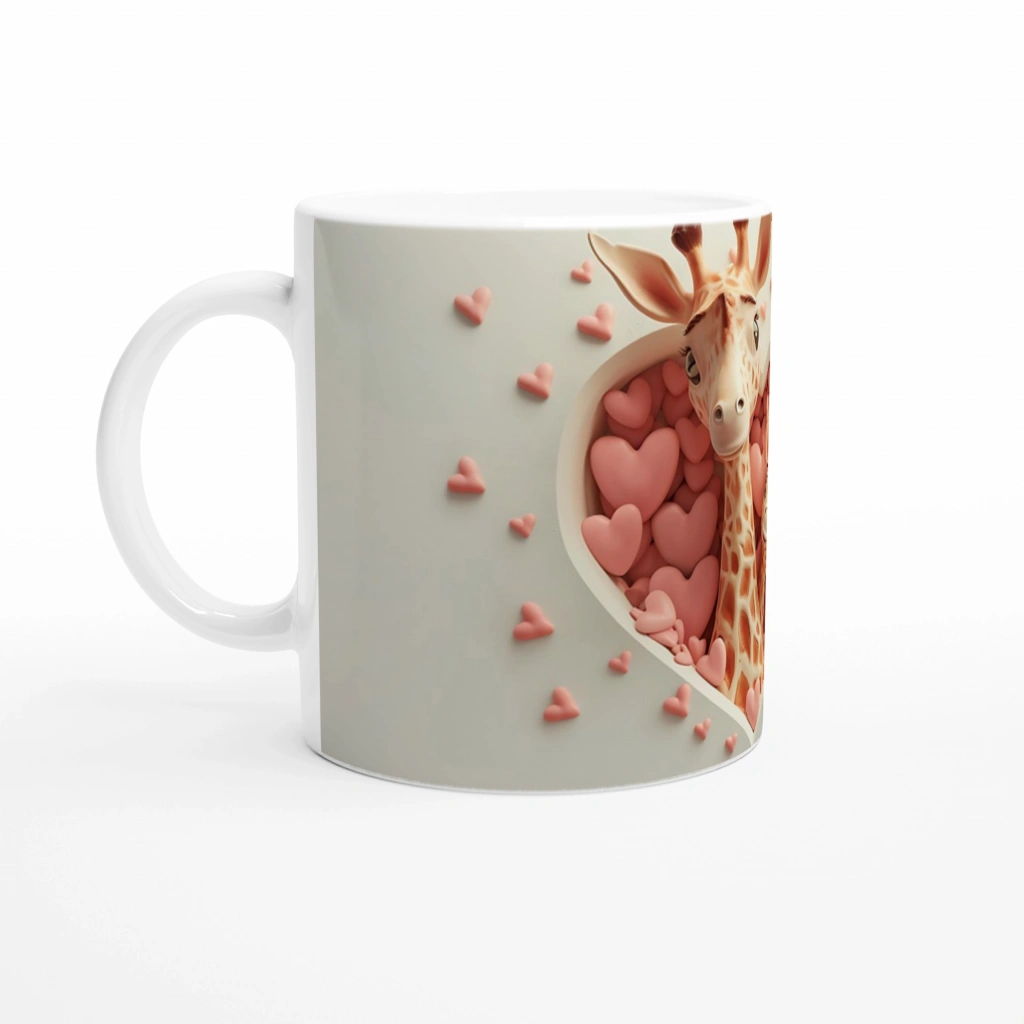 Kalpli Pencereden Bakan Zürafa Anne ve Yavrusu Temalı Baskılı Kupa Bardak, arka fondaki kalp detaylarıyla sevginin en tatlı halini yansıtır. Hayvansever annelere veya doğa temalı hediyeler arayanlara özel bir tasarımdır.