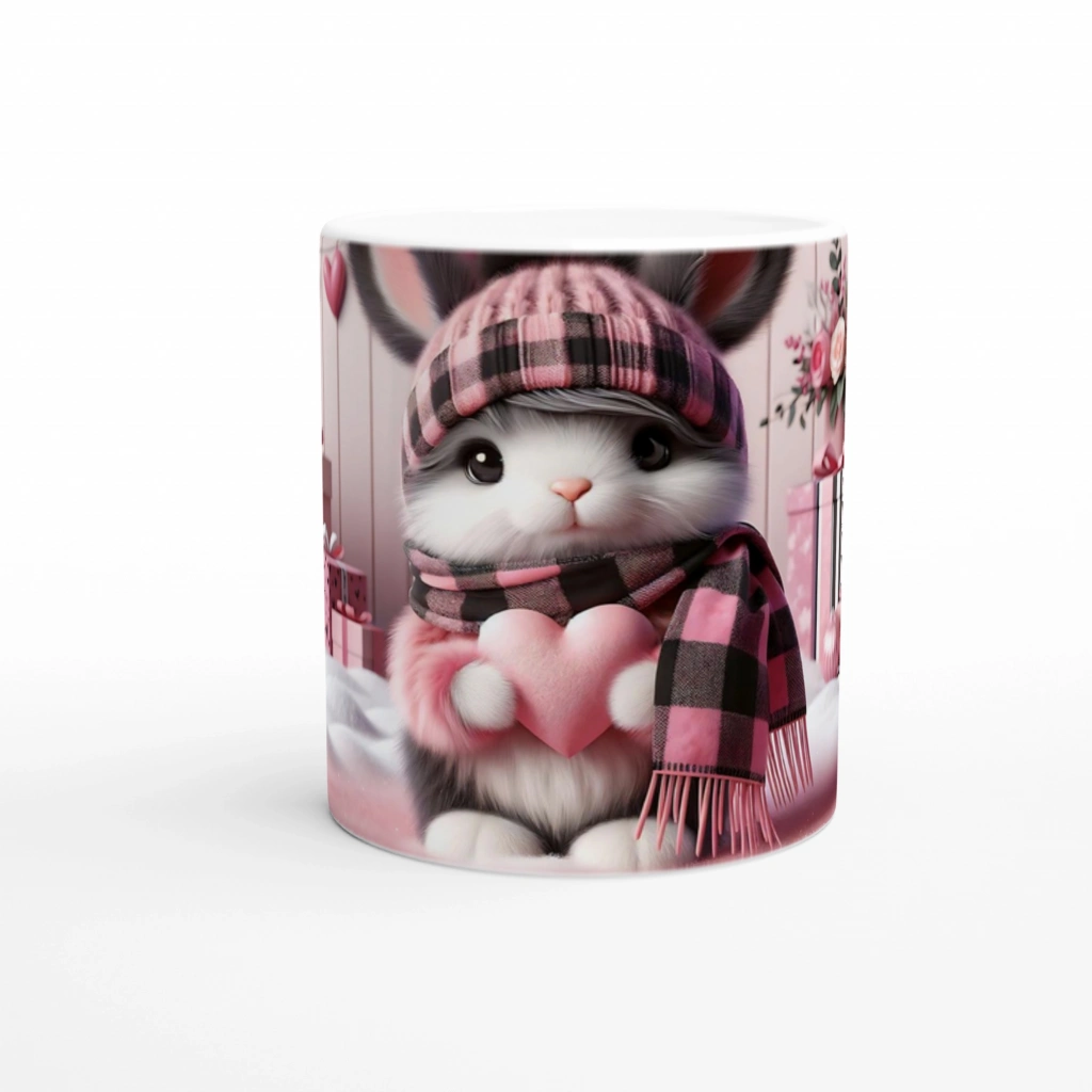 Kalpli Şapkalı Tavşan Temalı Baskılı Kupa Bardak, pembe armağan kutuları, yumuşak kürk efekti ve sevimli bakışlarla romantik anların sembolü oluyor. Kış aylarında ya da özel günlerde sevdiklerinize verilebilecek anlamlı ve içten bir hediye seçeneğidir.