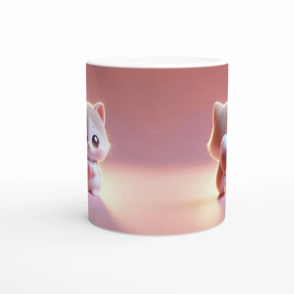 Önden ve arkadan görünüşüyle iki farklı perspektiften yansıtılan minik kedicik, pembe kalp detayıyla romantik ve neşeli bir atmosfer oluşturur. Hem çocuklara hem de kalpli tasarımları seven yetişkinlere hitap eden özel bir tasarımdır.