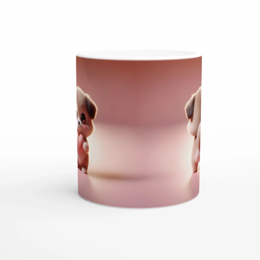 Ön ve arka yüz tasarımıyla detaylandırılan bu sevimli köpek figürü, pembe arka plan üzerinde pastel tonlarla vurgulanmış ve hem çocuklara hem de romantik hediye arayan yetişkinlere hitap ediyor. Her yudumda tatlı bir tebessüm armağan eder.