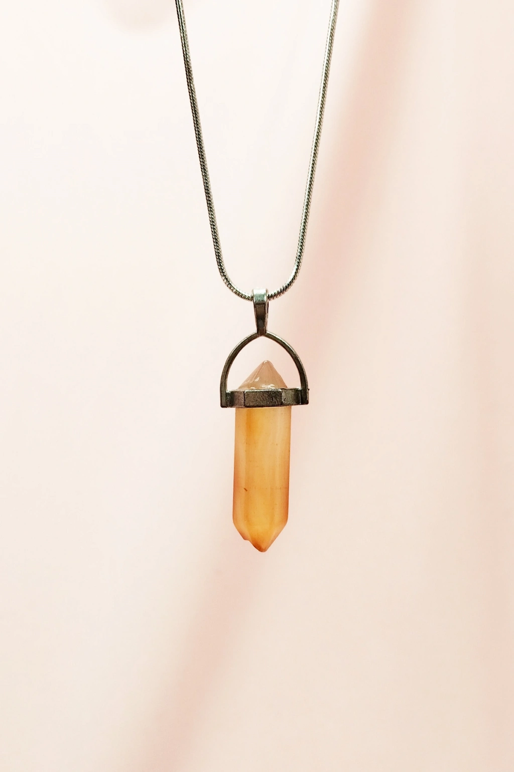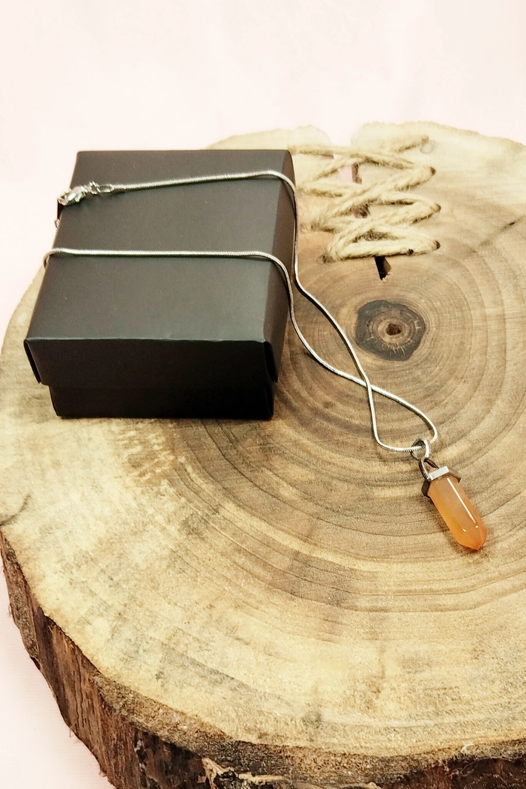 Kalsit Doğal Taşı Zincirli El Yapımı Tasarımlı Kolye Uç: 3,5 cm Zincir: 20 cm Kutulu