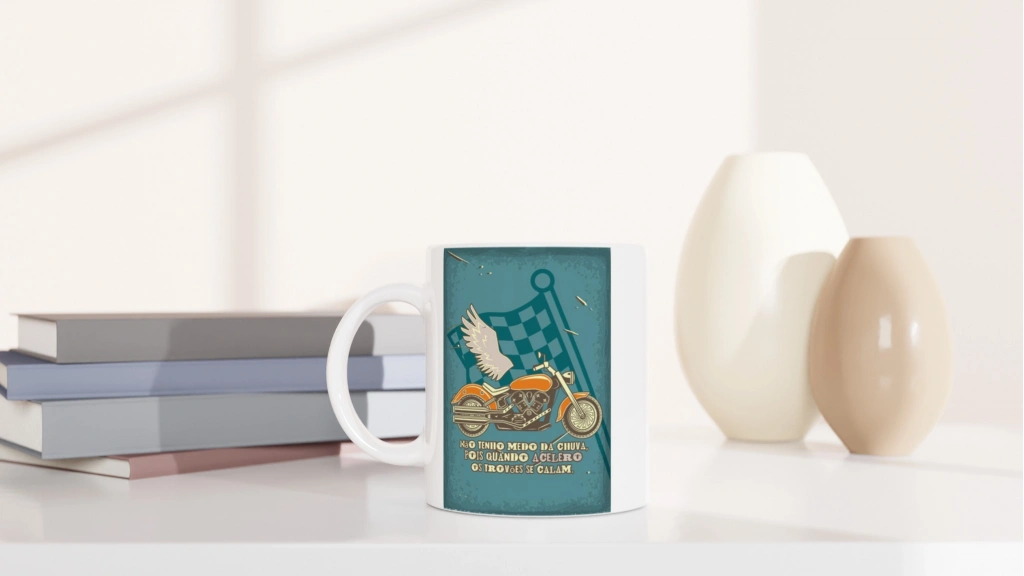 Kanatlı motosiklet figürü ve yarış bayrağıyla güçlendirilen bu baskılı kupa bardak, asi ruhlar için ilham verici bir tercih.