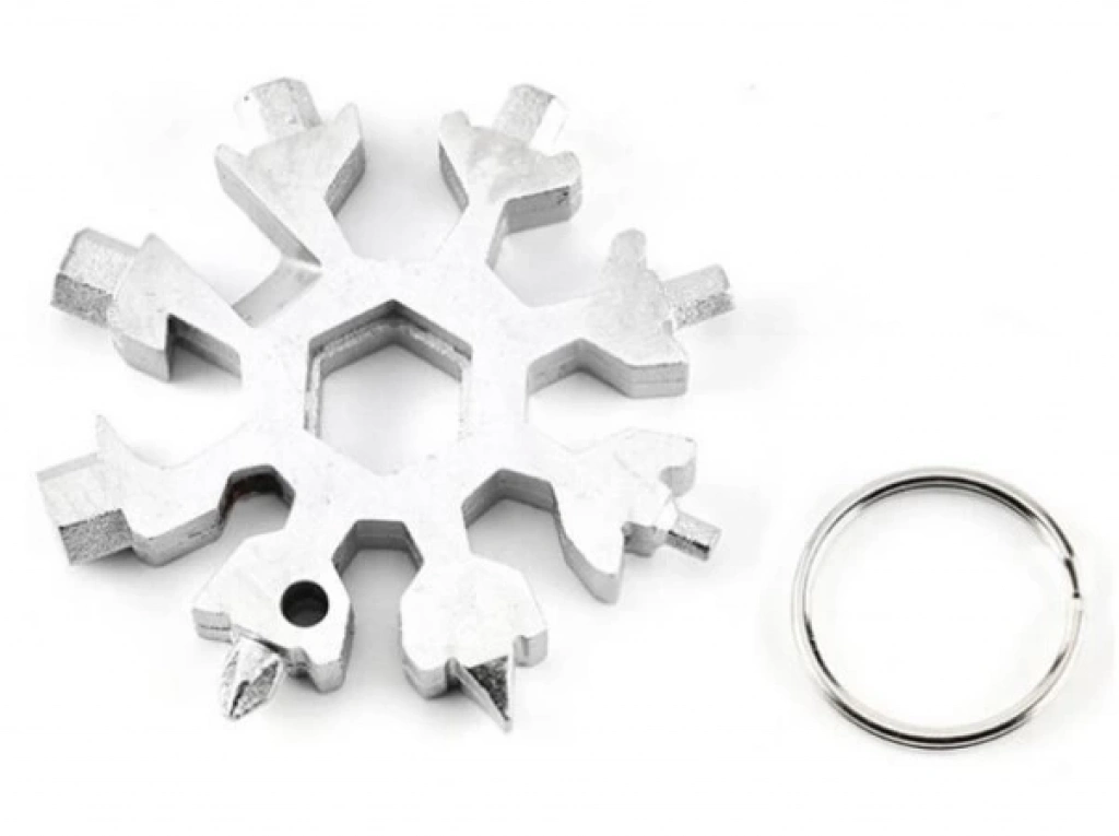 Kar Tanesi Çok Amaçlı Anahtarlık AçacakÜrün ÖzellikleriKar tanesi anahtarları son derece çok yönlüdür. Şişe açacağı, kutu açacağı, tornavida, emniyet çekiç, altıgen anahtar vb. Olarak kullanılabilir.18+1 çeşit düz yıldız tornavida, alyan, civata anahtarı, meşrubat açacağı, koli kesme gibi bir çok işlerinizi tek ürünle çözebilirsiniz.Avuç içine sığan küçük boyutu ile cebinizde veya çantanızda kolaylıkla taşıyabilirsiniz.Paslanmaz çelikten üretilmiştir.Her evde, araçta ve özellikte bisiklette motosiklet gibi ulaşım araçlarında bulunması gereken müthiş bir ürün.Dağcılık veya yürüyüş gibi açık hava sporlarında yanınıza almalısınız. Paket İçeriği1 Adet Kar Tanesi Çok Amaçlı Anahtarlık Açacak