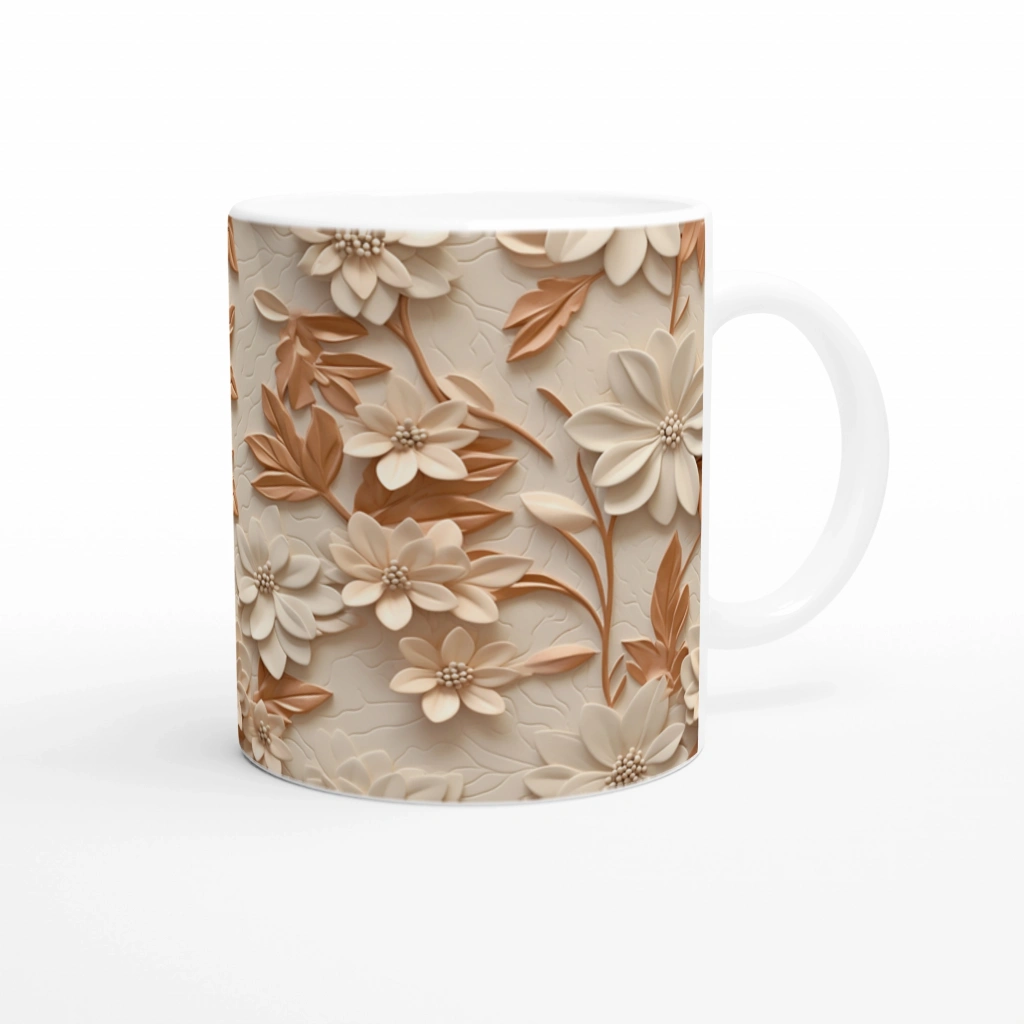 Karamel Tonlu Çiçek Desenli Kupa Bardak
