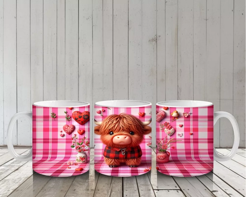 Kareli Pembe Fon ve Kalpli Buzağı – Baskılı Kupa Bardak