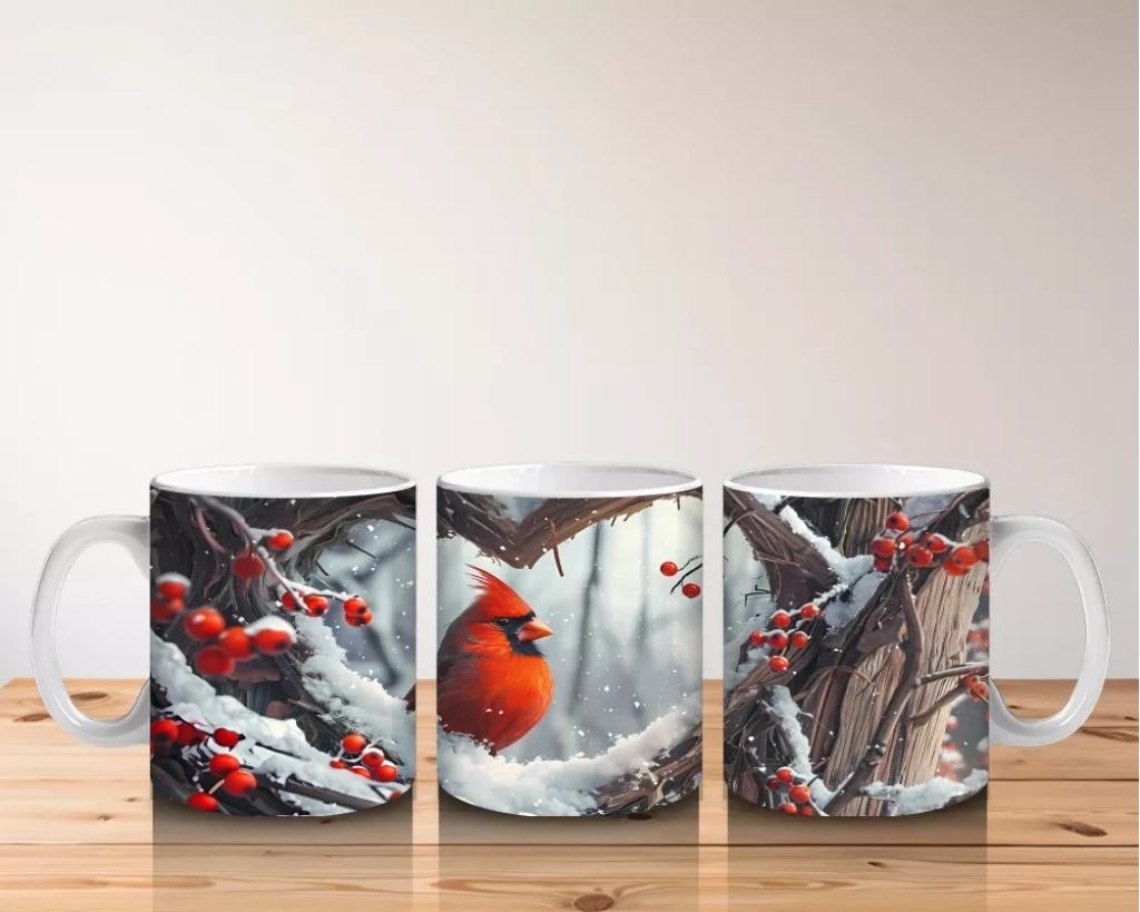 Karla Kaplı Dallar Üzerinde Kardinal Kuşu – Baskılı Kahve Kupası