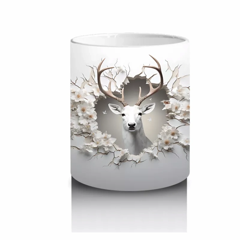 Karlı dalların arasında gizlenmiş geyik silueti, sakinlik ve doğallık hissi uyandırıyor. Minimalist ve huzur veren tasarımlardan hoşlananlar için ideal.