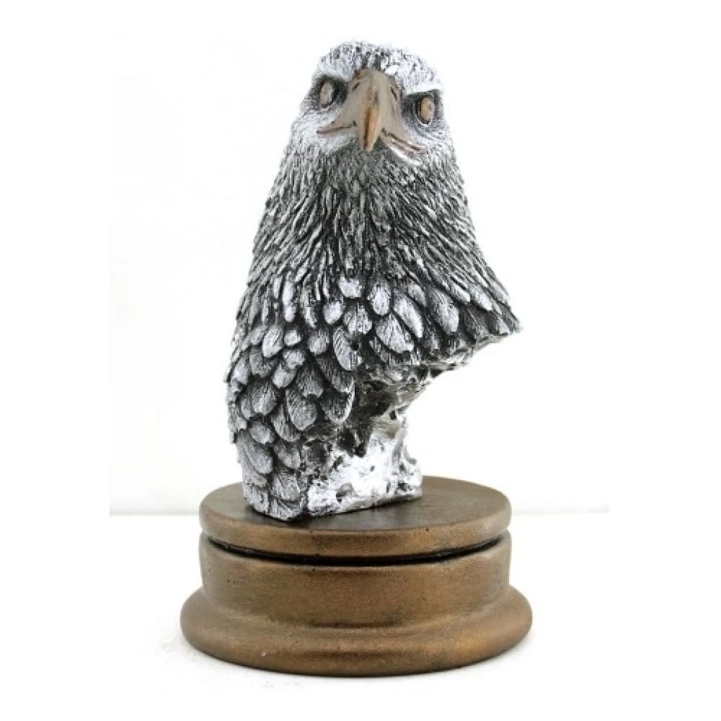 KARTAL BÜSTÜÜrün ÖzellikleriPolyester ve taş tozundan üretilmiş Kartal Kafası Biblosu, güçlü ve asil duruşuyla dikkat çeken dekoratif bir parçadır. El işçiliğiyle detaylandırılmış tüy yapısı ve keskin bakışları, gerçekçi bir tasarım sunar. 17x9 cm boyutuyla ofis, çalışma odası veya oturma alanları için mükemmel bir dekorasyon objesidir. Dayanıklı malzemesi sayesinde uzun ömürlü kullanım sunar. Paket İçeriği1 Adet Kartal Büstü