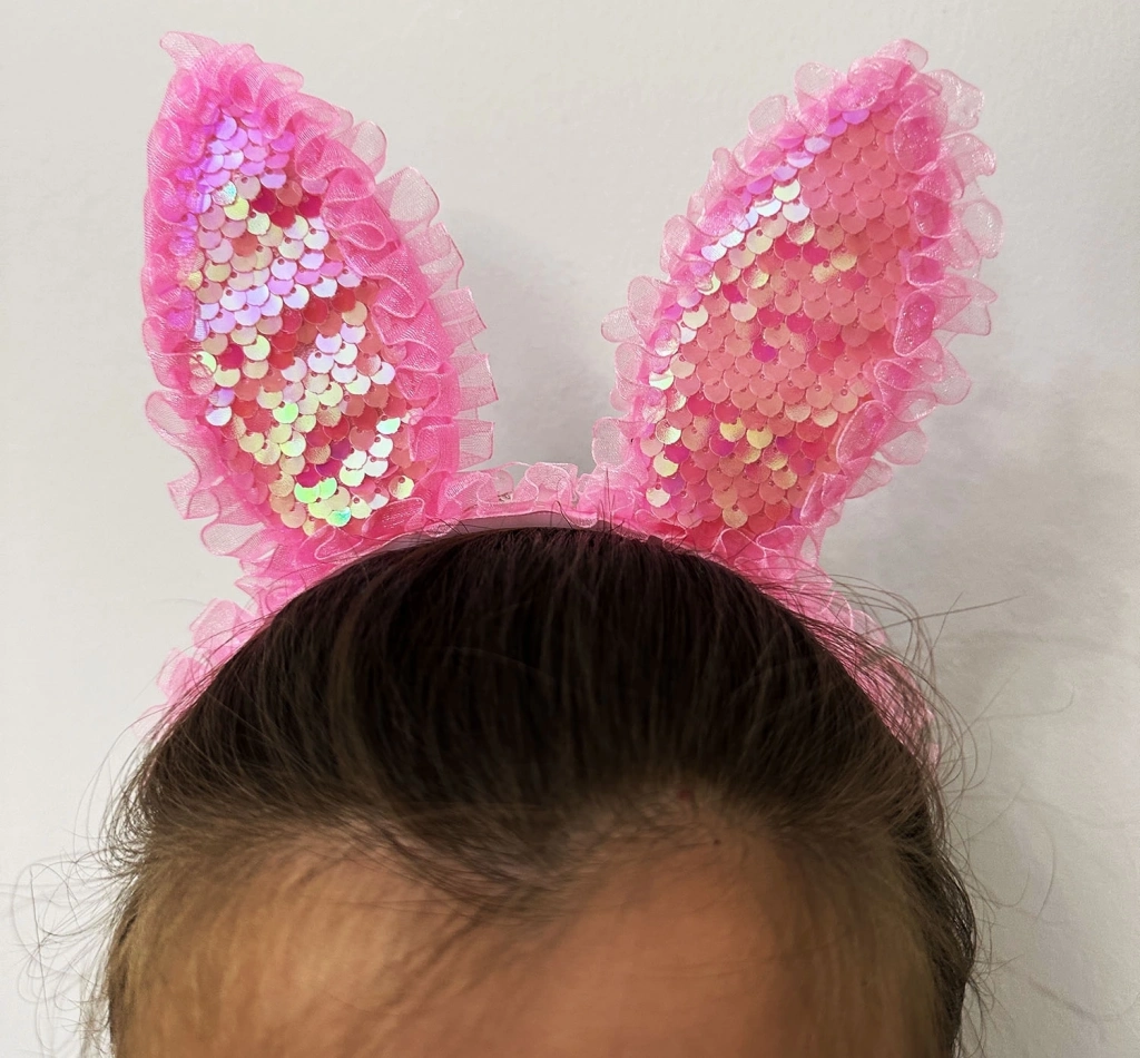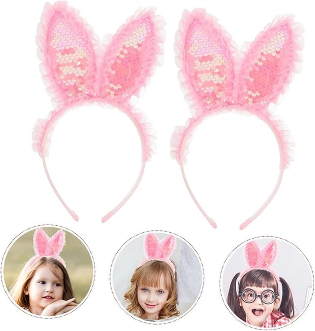 Eğlencenin ve şıklığın bir araya geldiği Kenarları Dantelli Pembe Pullu Payetli Led Işıklı Tavşan Kulak Taç ile partilerin yıldızı olun