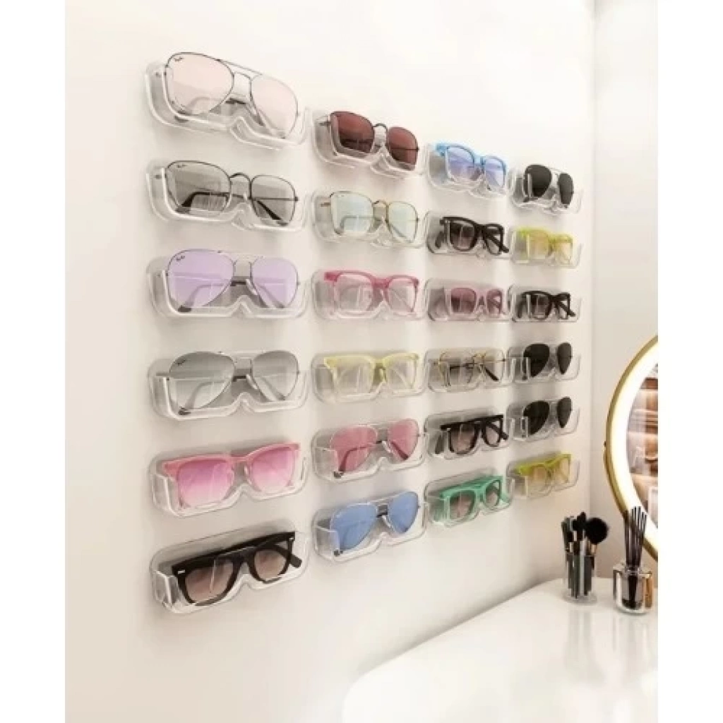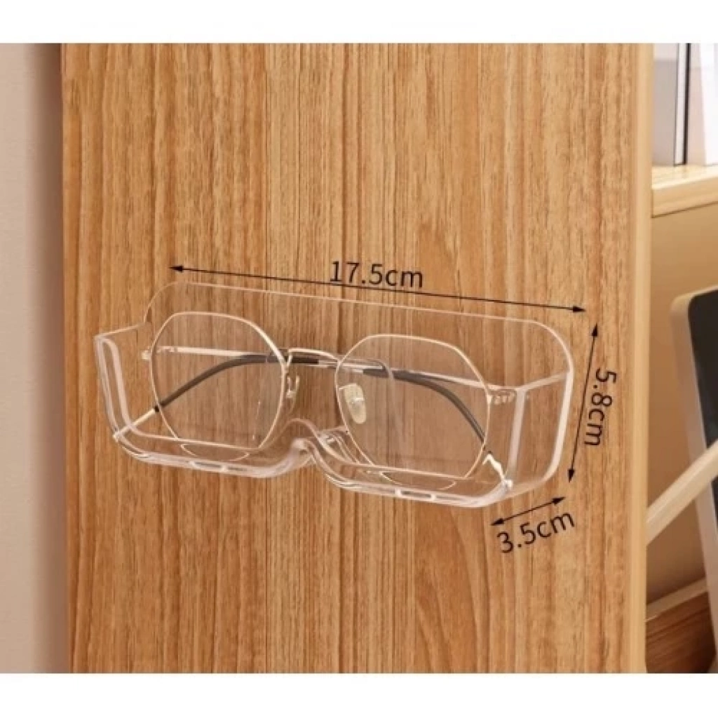 KENDİNDEN YAPIŞKANLI ŞEFFAF GÖZLÜK STANDI Yapışkanlı gözlük düzenleyici isterseniz çekmece içi isterseniz dolap içi kullanıma uygundur.Gözlüklerinizi çizilmeye karşı elinizin altında düzenli şık bir şekilde gözükmesini sağlar.Dolapların içine Banyo ayna kenarına vb. duvara nereye yapıştırmak istersenizAraç içi kullanıma da uygundur.Paket içeriği 1 adet Kendinden Yapışkanlı Şeffaf Gözlük Standı Uzunluk 17 cm  yükseklik 6 cm en 3 cmMalzeme: Şeffaf Pleksi