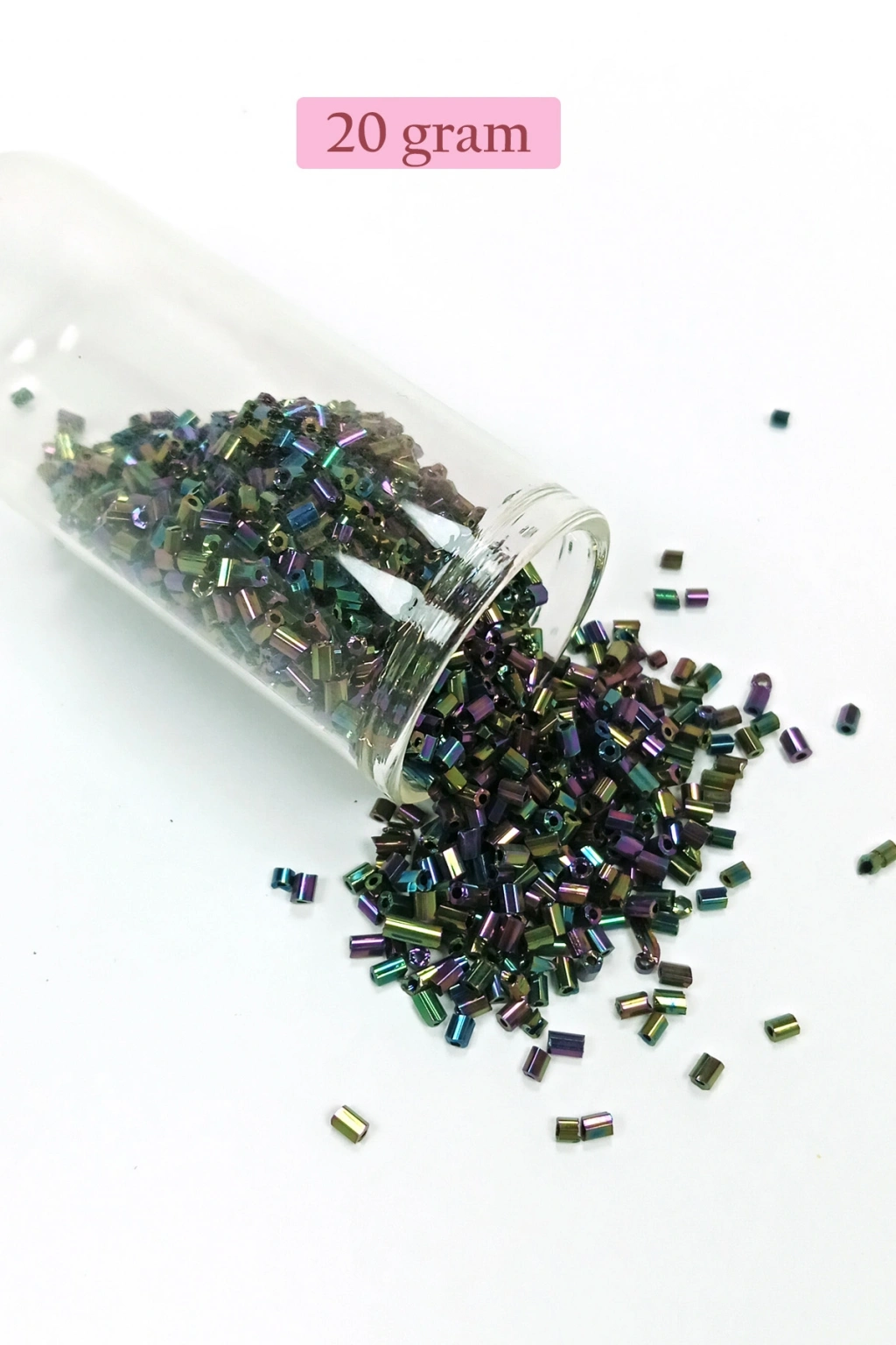 Kesme kum boncuklar 20 gramlık paketlerdedir.