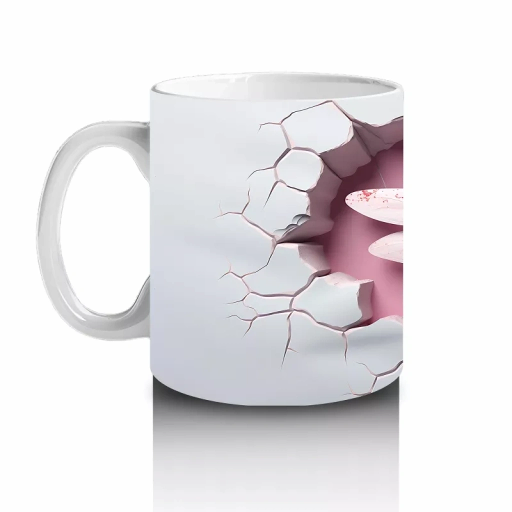 Kırık Duvar Arasında Pembe Kelebek – Baskılı Kahve Kupası