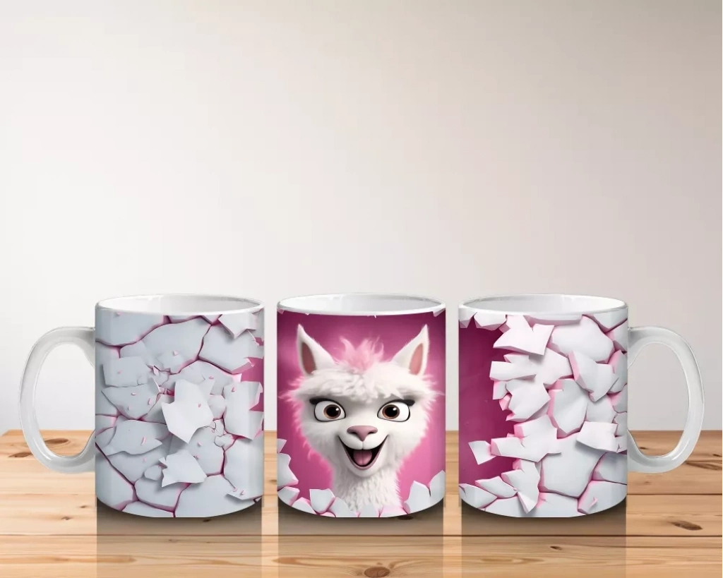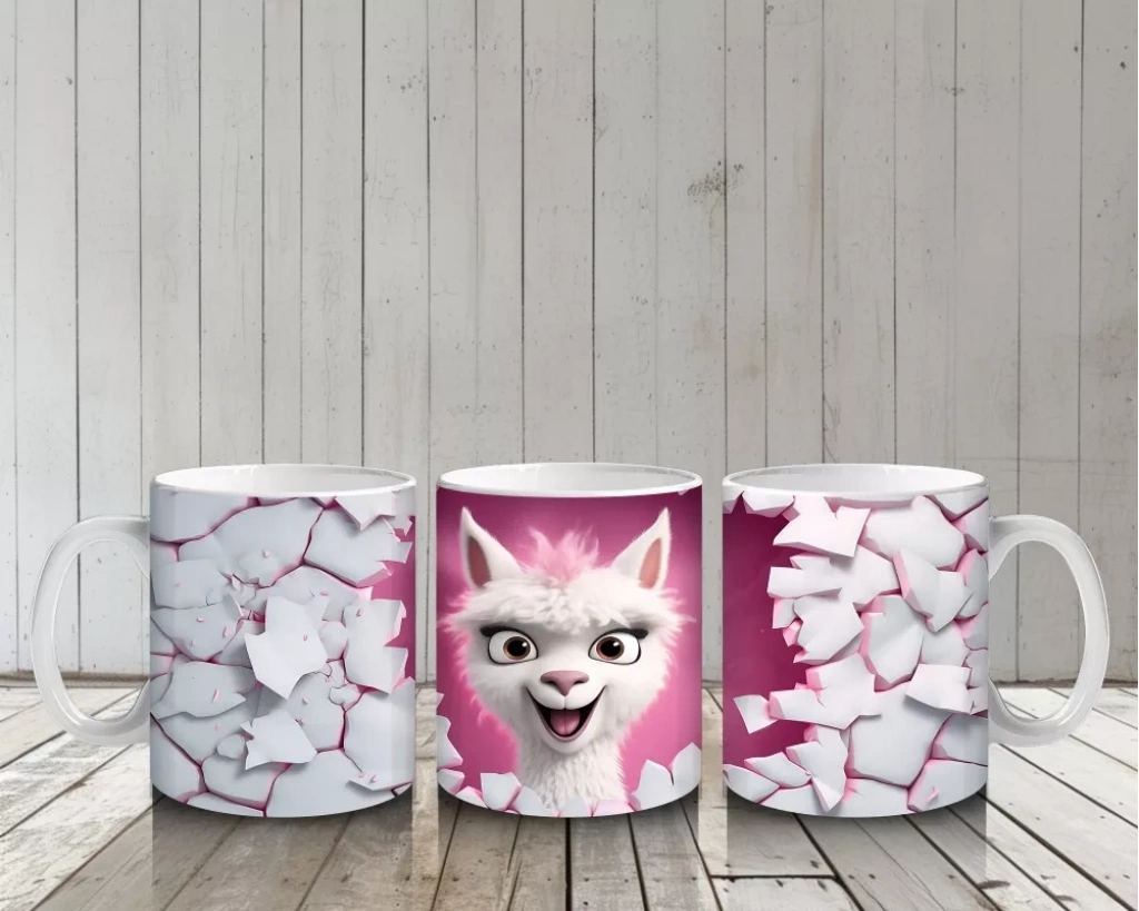Kırık Seramik Duvar Arasından Bakan Neşeli Lama – Baskılı Kahve Kupası