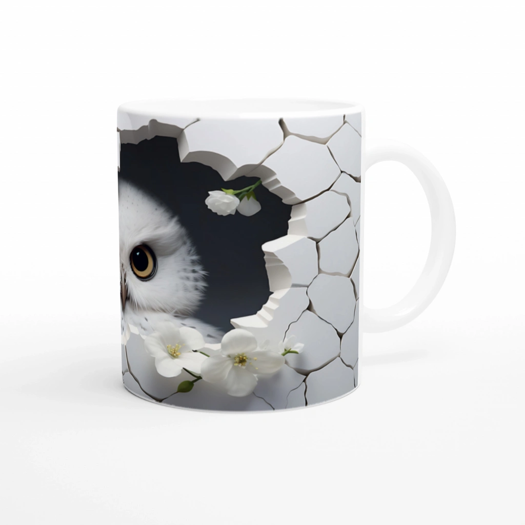 Kırık Seramikten Bakan Beyaz Baykuş Baskılı Kupa Bardak
