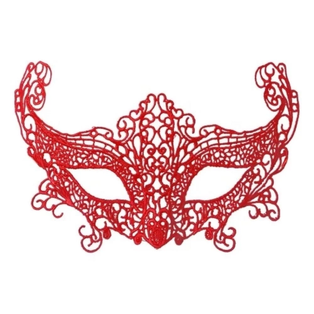 Kırmızı Renk Dantel Örgü İşlemeli Parti Maskesi Model 3