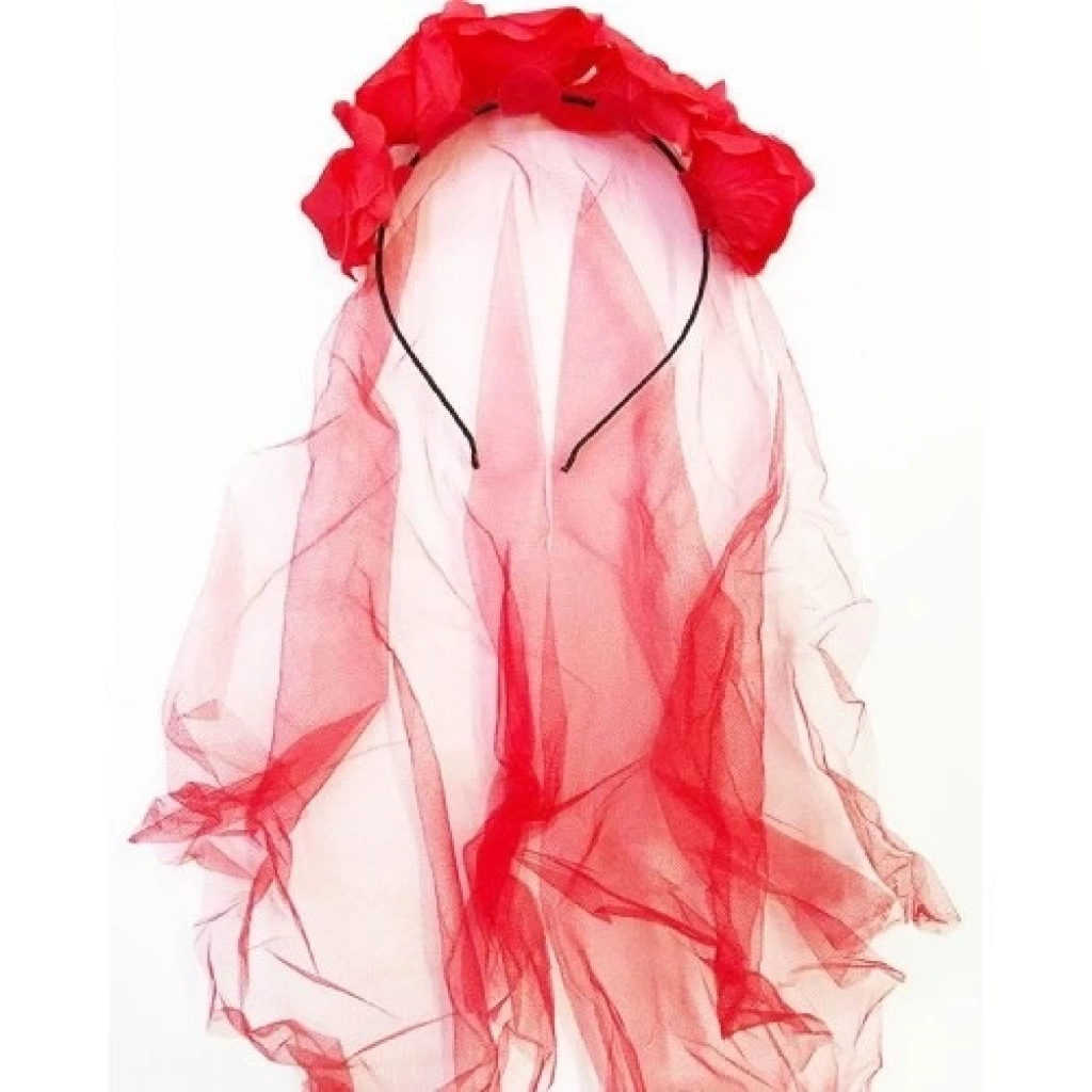 Kırmızı Renk Güllü Duvaklı Halloween Taçı