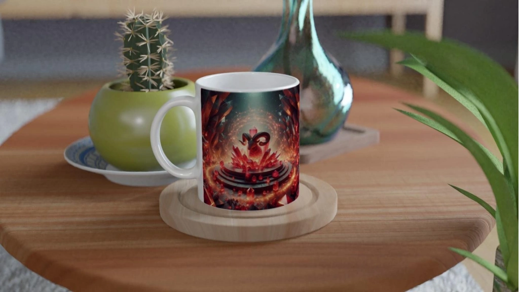 Koç Burcu Baskılı Kahve Kupası - Büyülü Kristal Mağarası Temalı Vs3