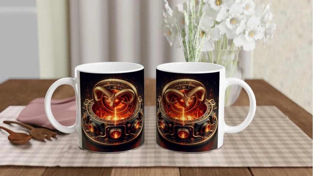 Koç Burcu Baskılı Kahve Kupası - Zamanın Çarkları Astroloji Mekanizması Vs4