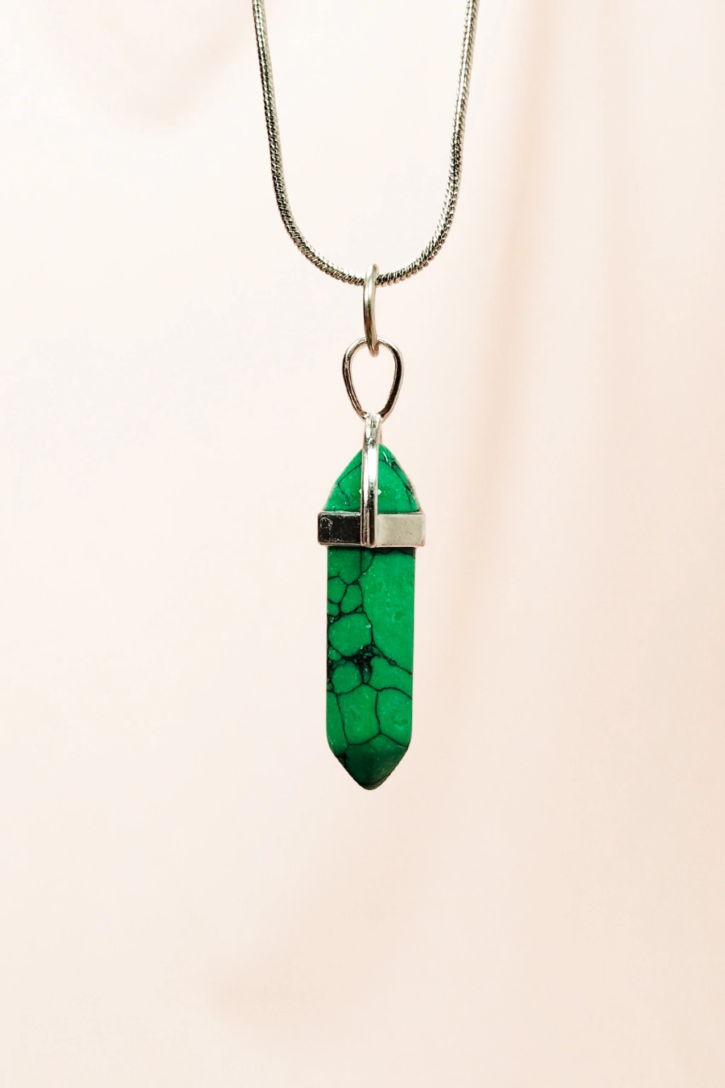 Krizopraz Doğal Taşı Zincirli El Yapımı Tasarımlı Kolye Uç: 3,5 cm Zincir: 20 cm Kutulu