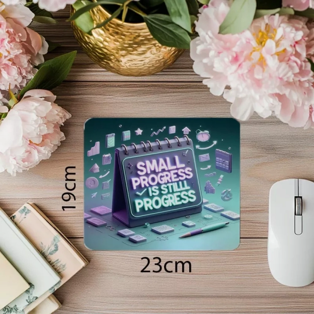 Küçük İlerlemeler Sloganlı Mousepad – 3D Renkli - 19x23 cm 2 mm Dikdörtgen İthal Baskılı Mouse Pad