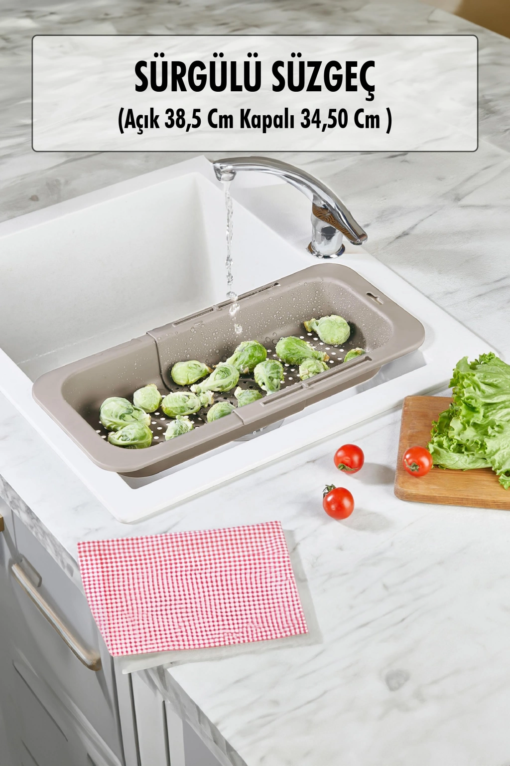 Lavoba İçi Sürgülü Açılır Kapanır Sebze Meyve Süzgeci Siyah (Açık 38,5 Cm Kapalı 34,50 Cm ) En :20 Cm Kapalı Boy :35 Cm Açık Boy :45 Cm Yükseklik :7 Cm Hacim : RENK :Vizon MALZEME :Plastik PARÇA SAYISI :1 Parça Satın aldığınız ürünle ilgili oluşan bir sorunda ivedilikle bizimle iletişime geçin. İade Koşulları: Ürünlerin tarafınıza ulaştığı gibi patpata sarılı, kutulu ve ambalajı bozulmamış olarak iade edilmesi gerekmektedir. Aksi halde gönderilen iadeler kabul edilemeyecektir.