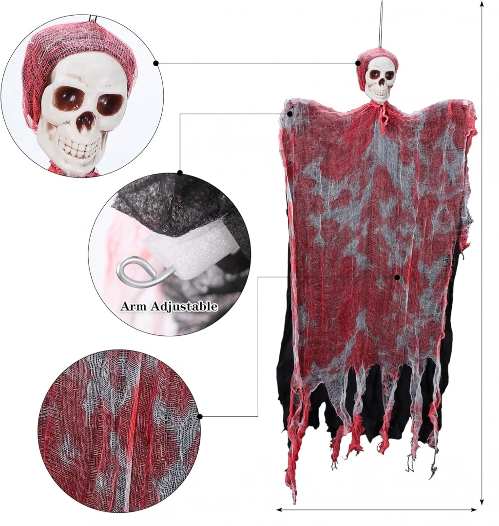 Led Işıklı Kahkaha Atan Sesli Ürpertici Kuru Kafa Kanlı Korku Hayalet Saçaklı Dekor