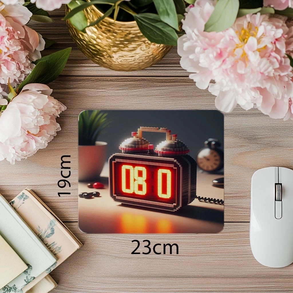 LED Sayılı Alarm Saati Mousepad – Kırmızı Işık - 19x23 cm 2 mm Dikdörtgen İthal Baskılı Mouse Pad