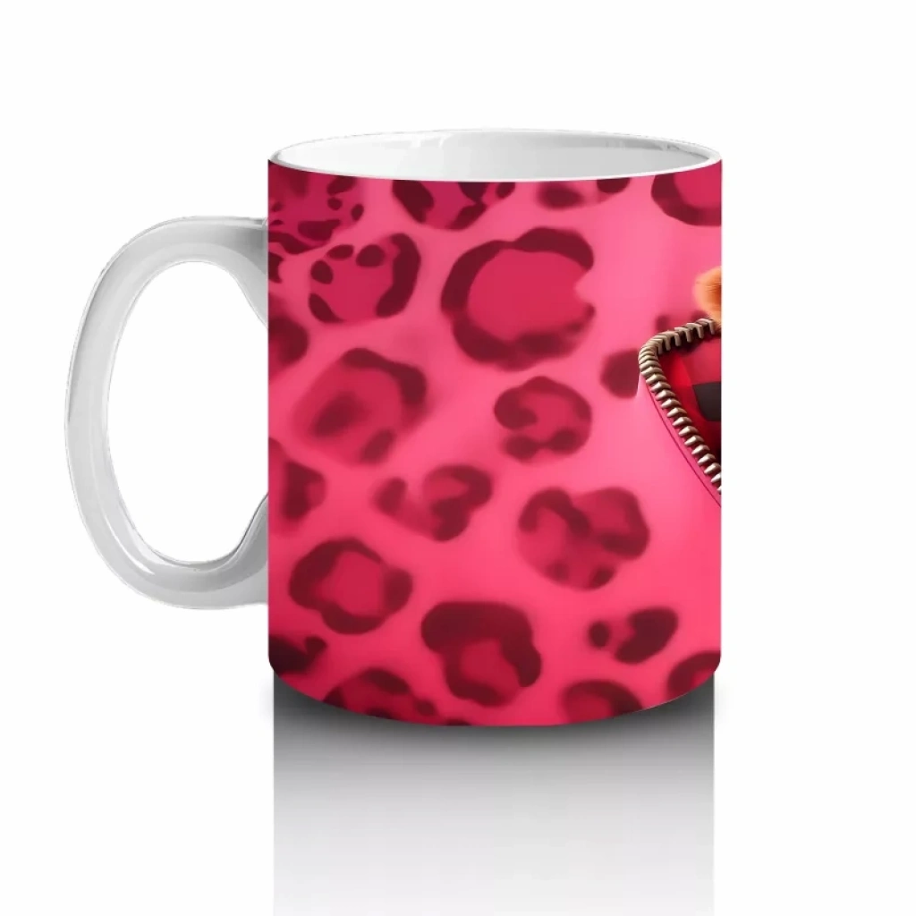 Leopar Desenli Zemin Üzerinde Buzağı Figürü – Baskılı Kahve Kupası