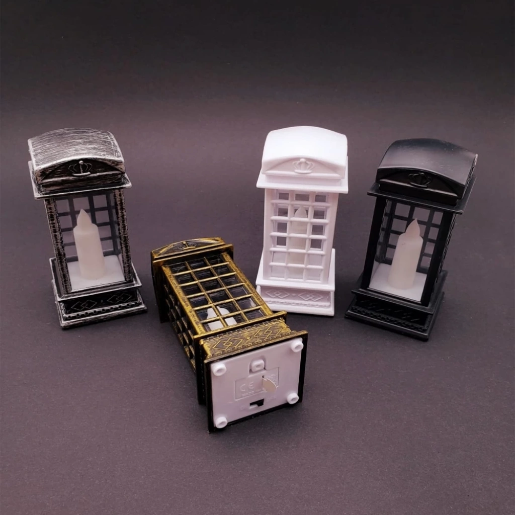 Gece lambası london telefon külübesi tasarımı ele alınarak tasarlanmış olup ve bu tasarımıda bir de Led ışık koyulduğu zaman nostaljik bir gece lambası haline gelmiştir.
