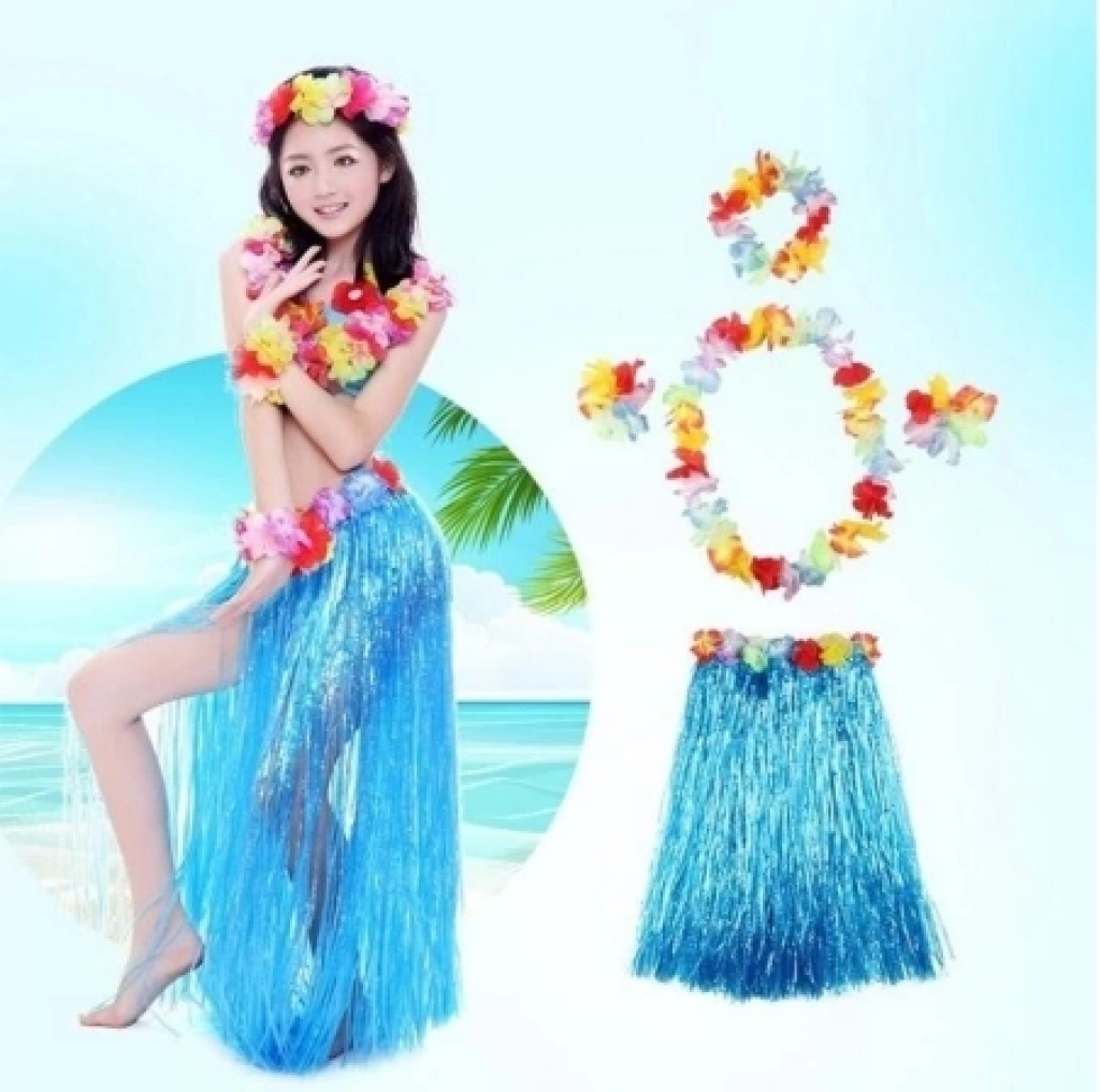 Luau Aloha Hawaii Partisi Etek Taç Ve Bileklik Seti Mavi