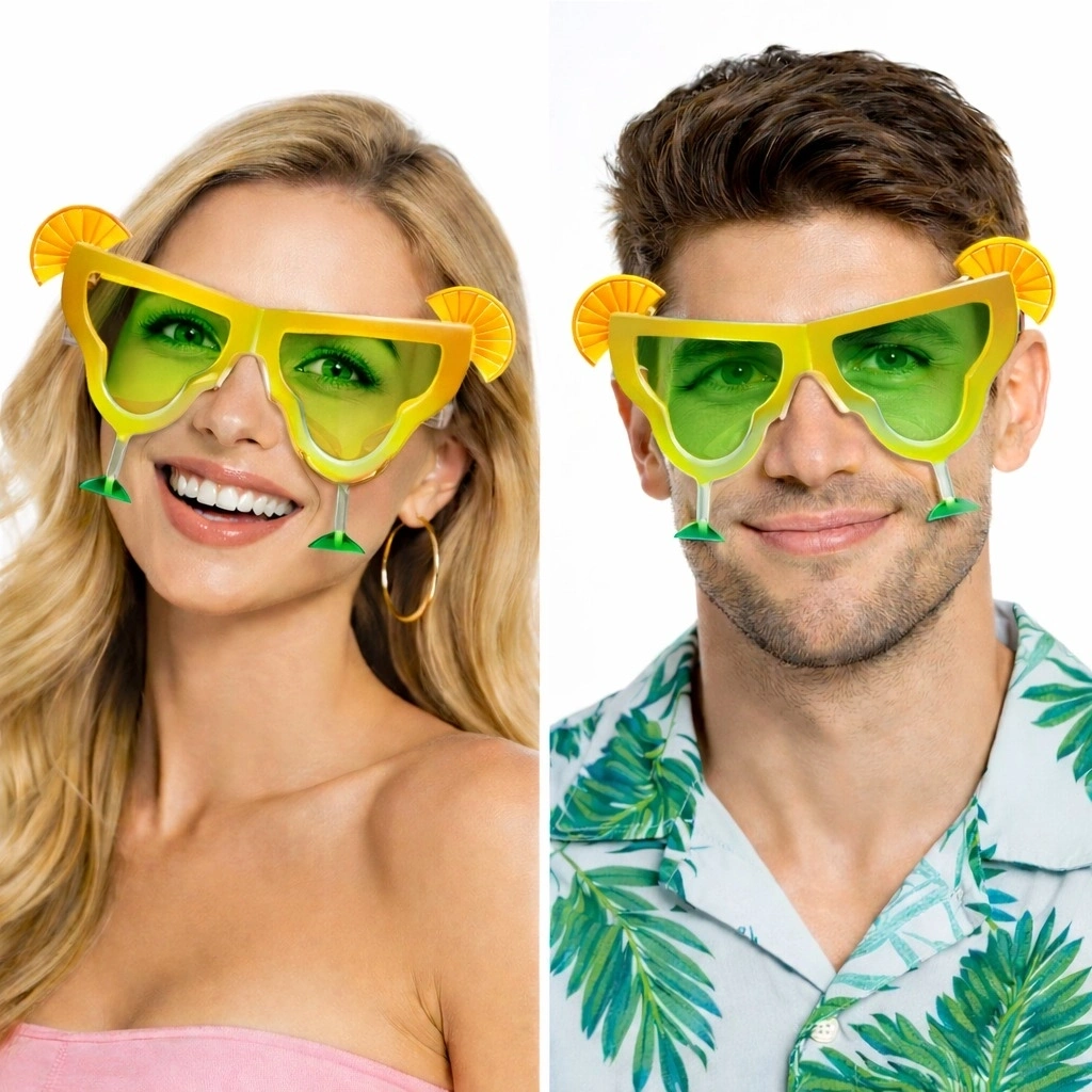 Yeşil şeffaf camlı kokteyl parti gözlüğü, eğlenceli tasarımıyla partilerin ve festivallerin vazgeçilmez aksesuarıdır.